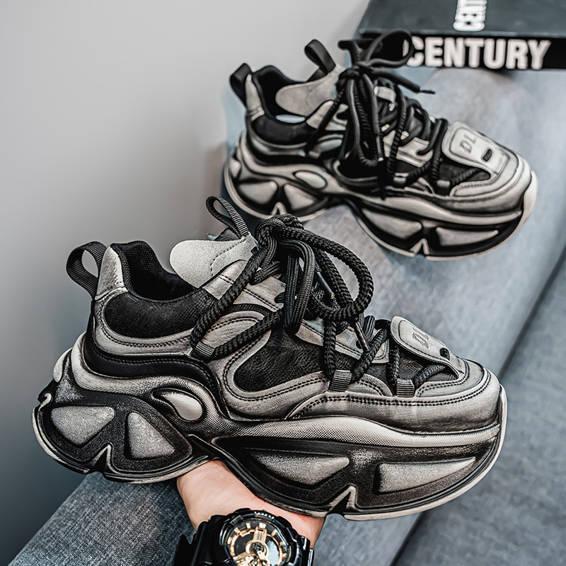 お父さんの靴の男の2025新型の春の小さい大衆のネットの赤い爆発の爆発のランニングの運動靴の厚い底は学生のカジュアルシューズを高く上げます。