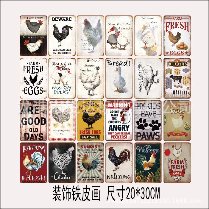 2024新型対外貿易chickens雄鶏復古鉄皮画農場背景壁無枠装飾壁画