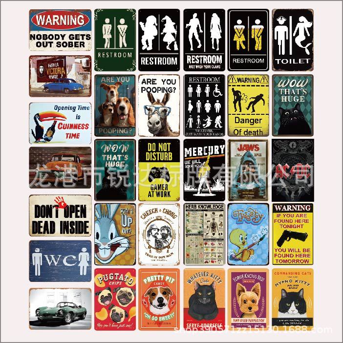 跨境厂家货源美式复古铁皮画壁饰酒吧咖啡馆装饰墙壁饰挂件工艺品