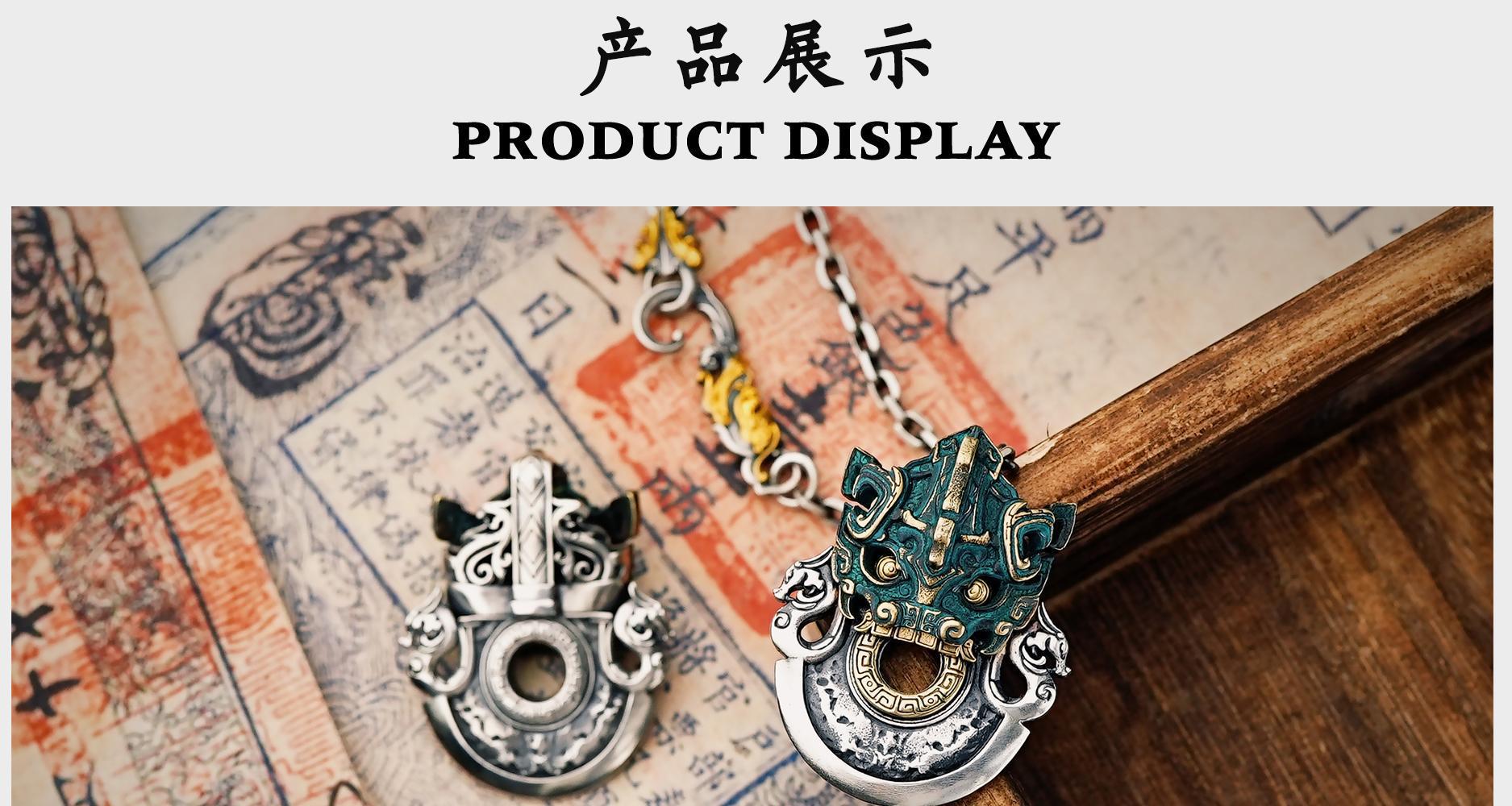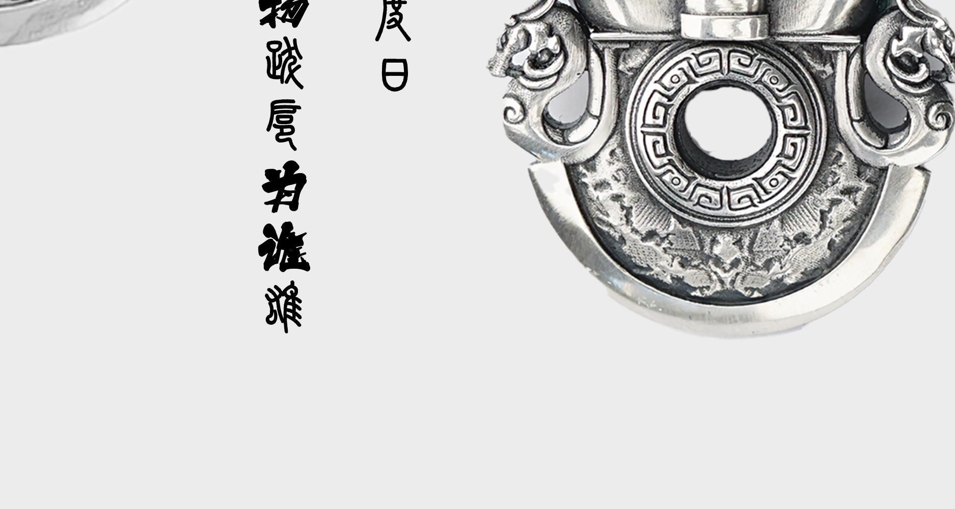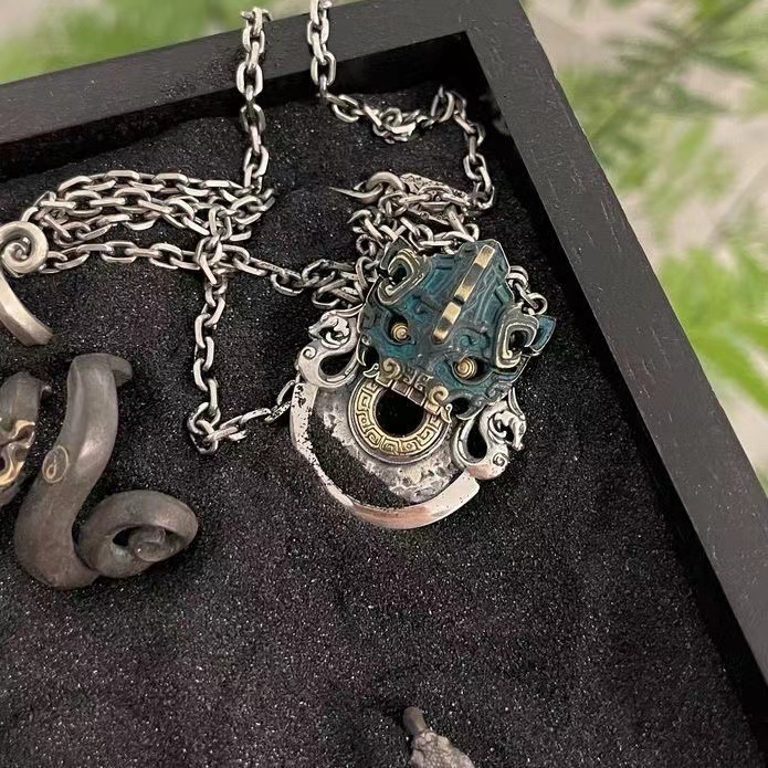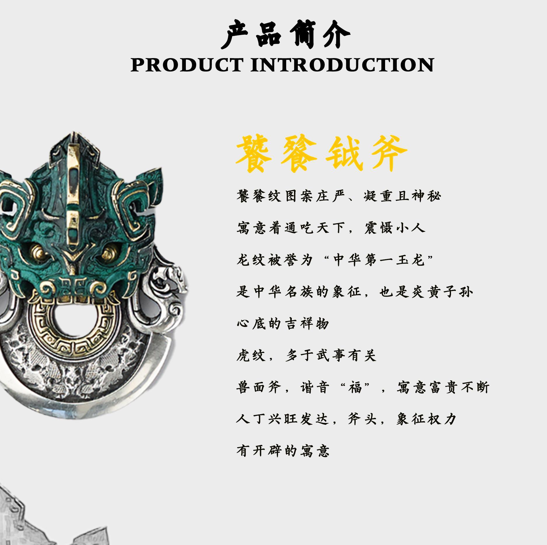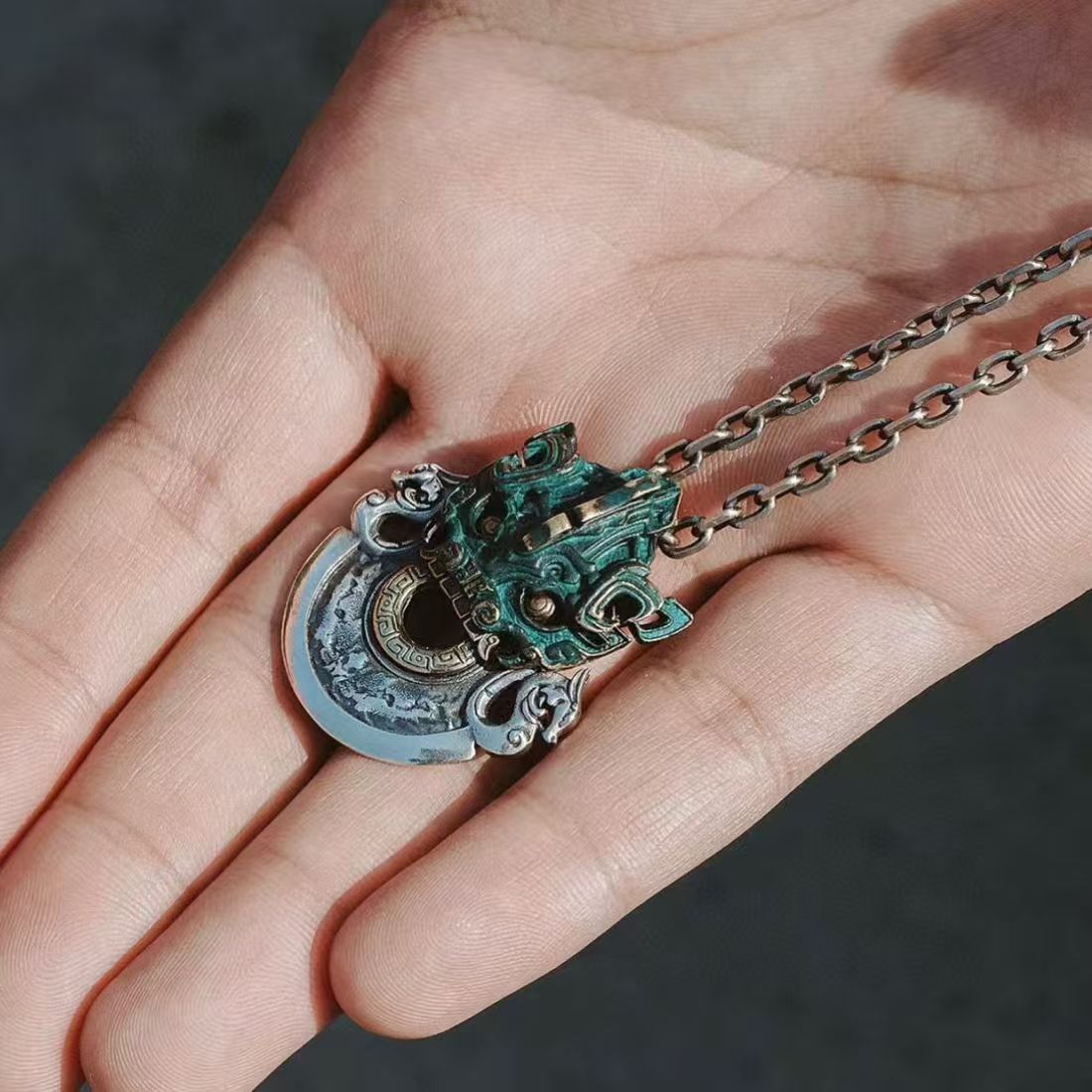 黄铜镀银做旧国风复古男士饕餮神兽斧钺龙纹坠聚财转运挂项链吊坠