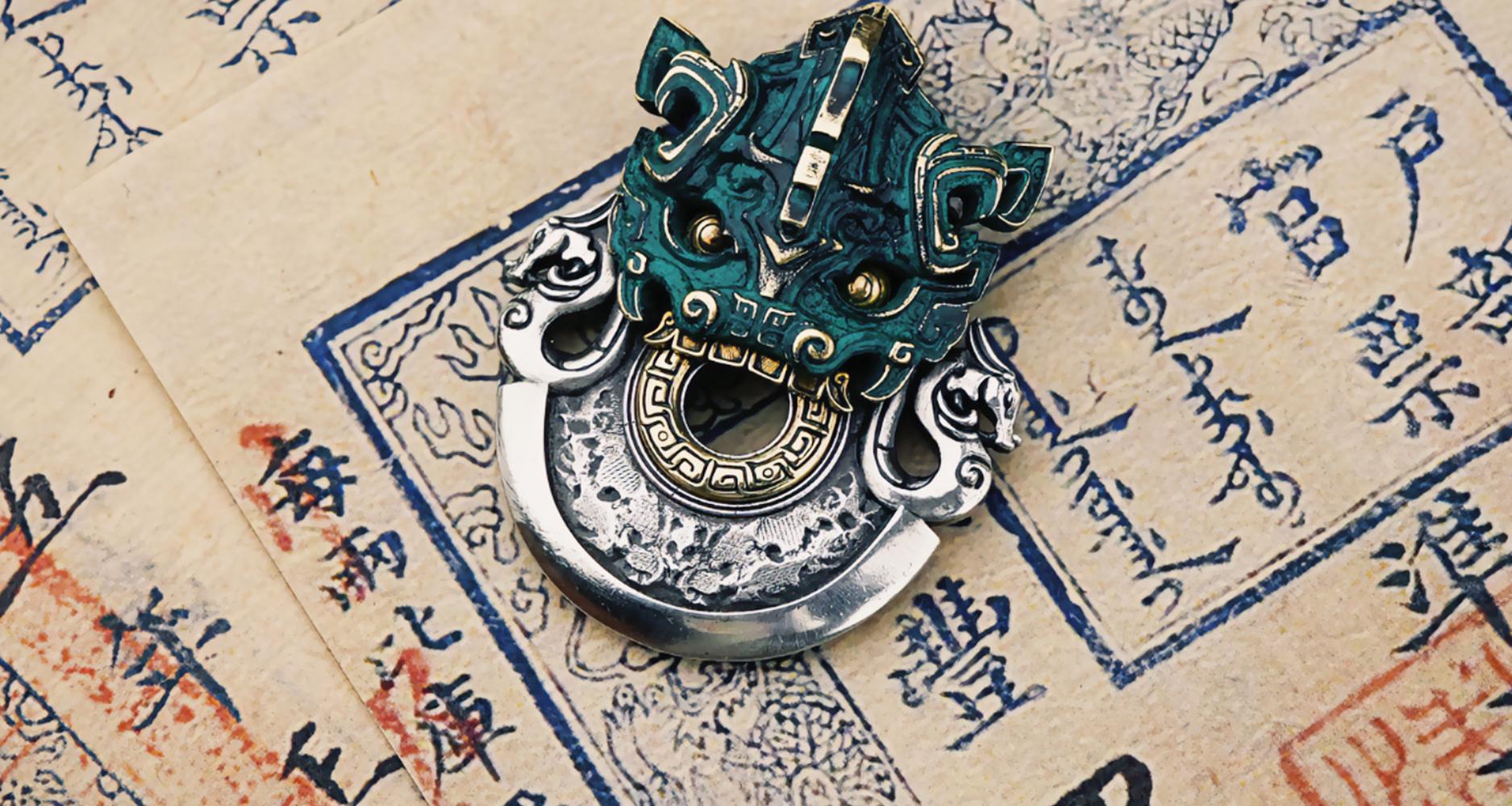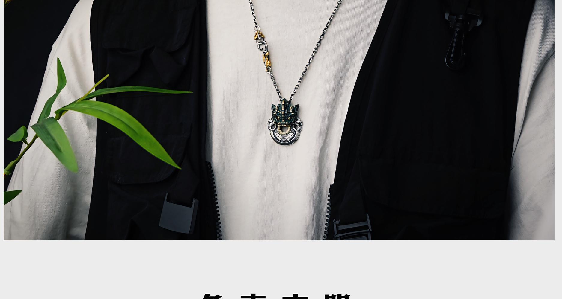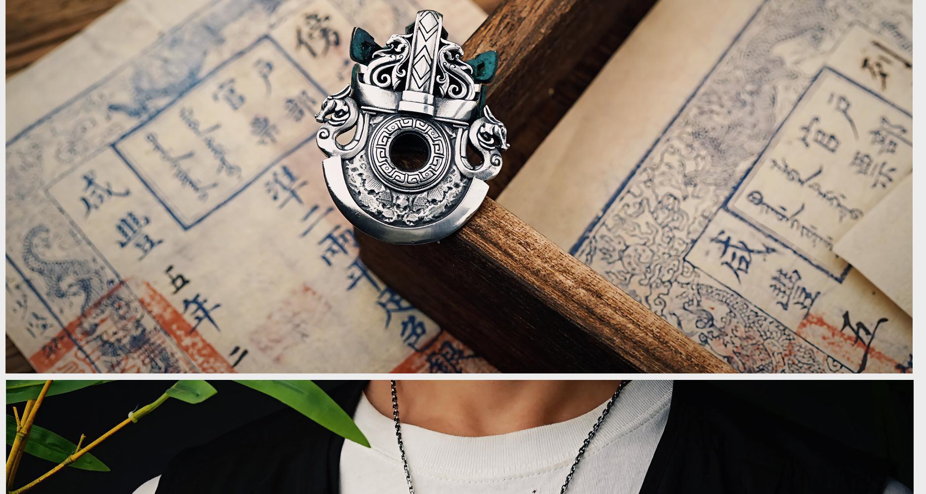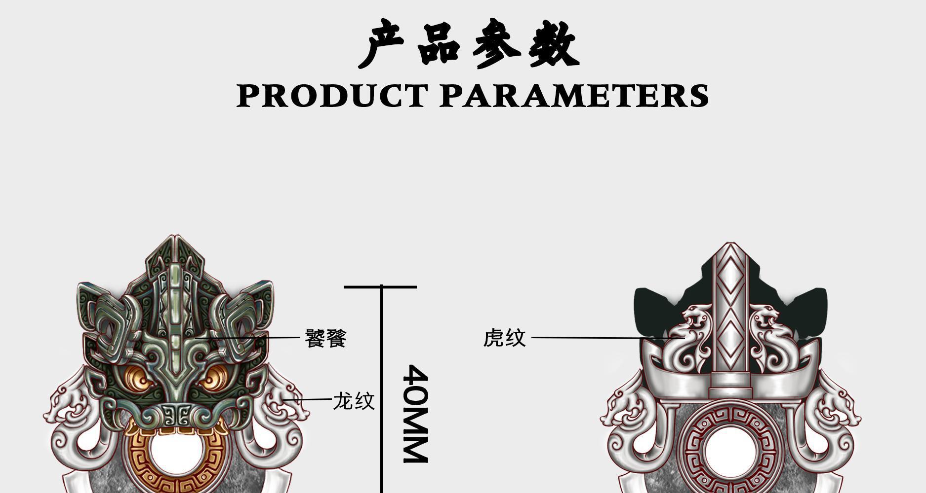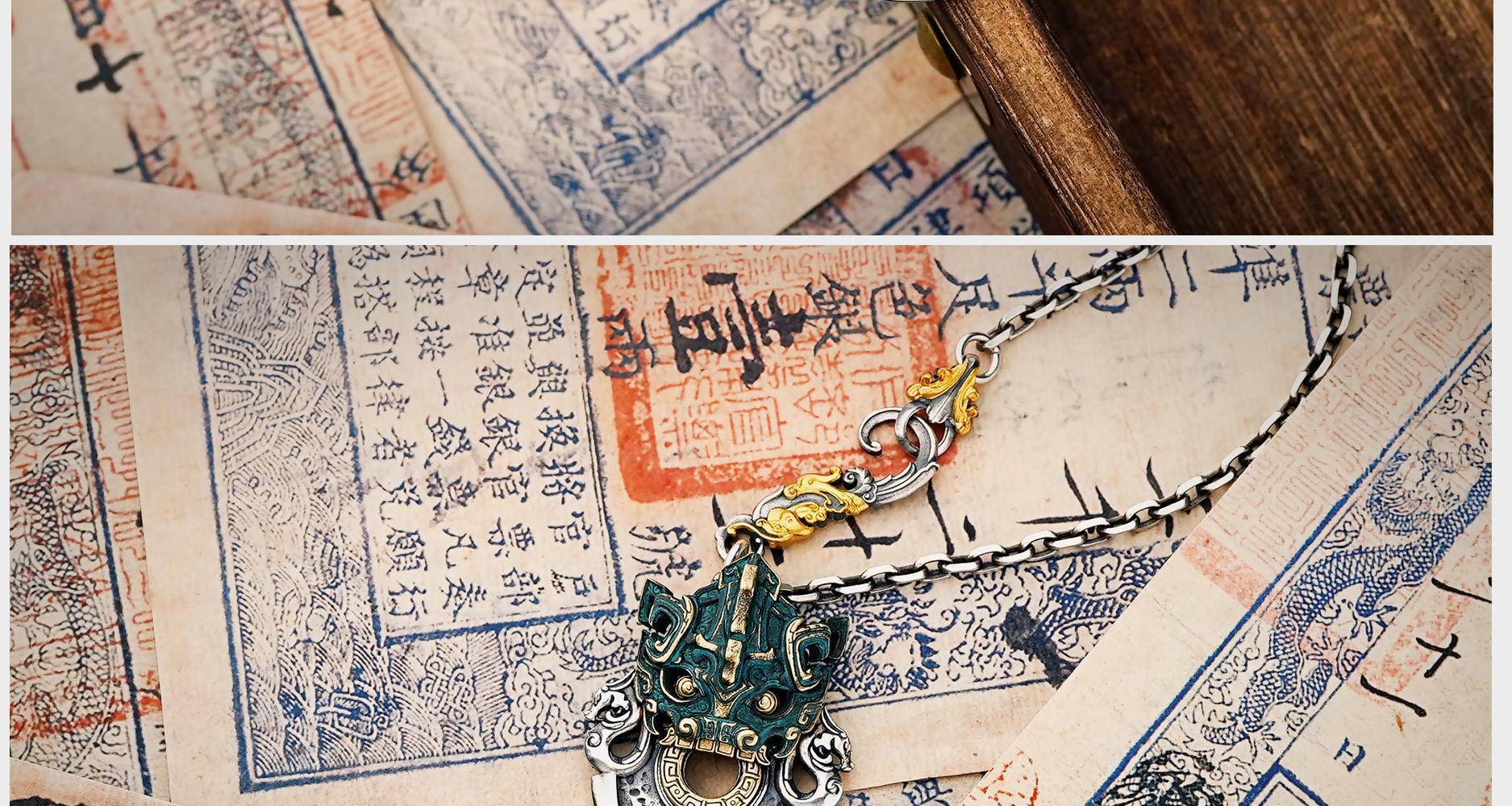 黄铜镀银做旧国风复古男士饕餮神兽斧钺龙纹坠聚财转运挂项链吊坠
