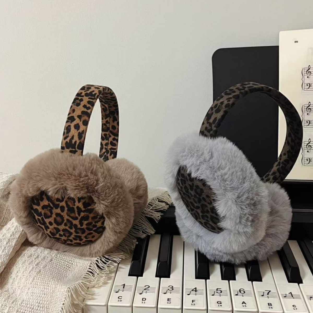 复古辣妹INS毛绒耳罩冬季氛围感豹纹保暖护耳套骑车防寒防冻耳捂