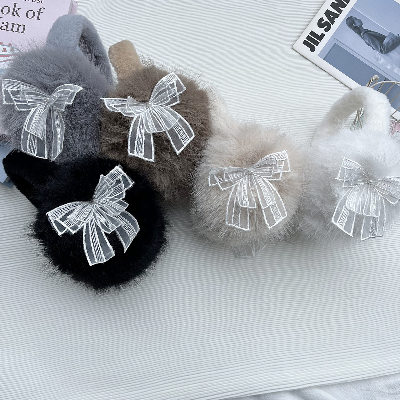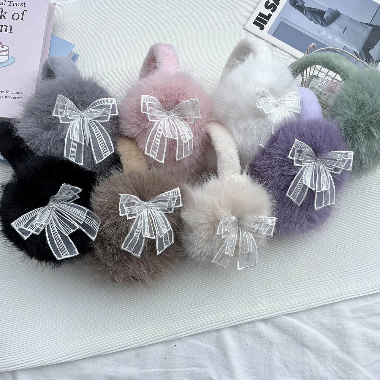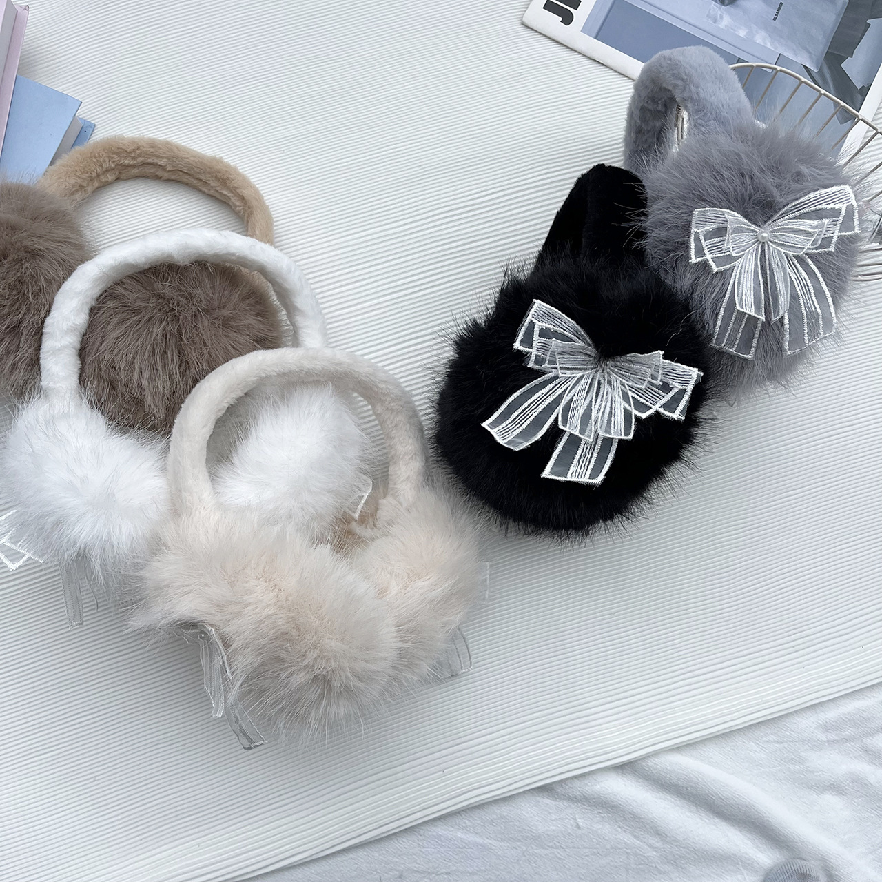 耳カバー冬のかわいいぬいぐるみ保温耳カバーネット版シンプルな百合学生長毛折り畳み式凍結防止耳カバー