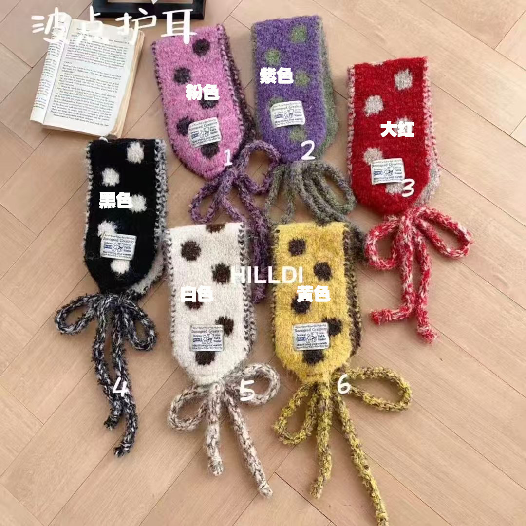 25秋冬新款可爱圆点针织护耳头巾韩系秋冬学生保暖护颈系带围脖女