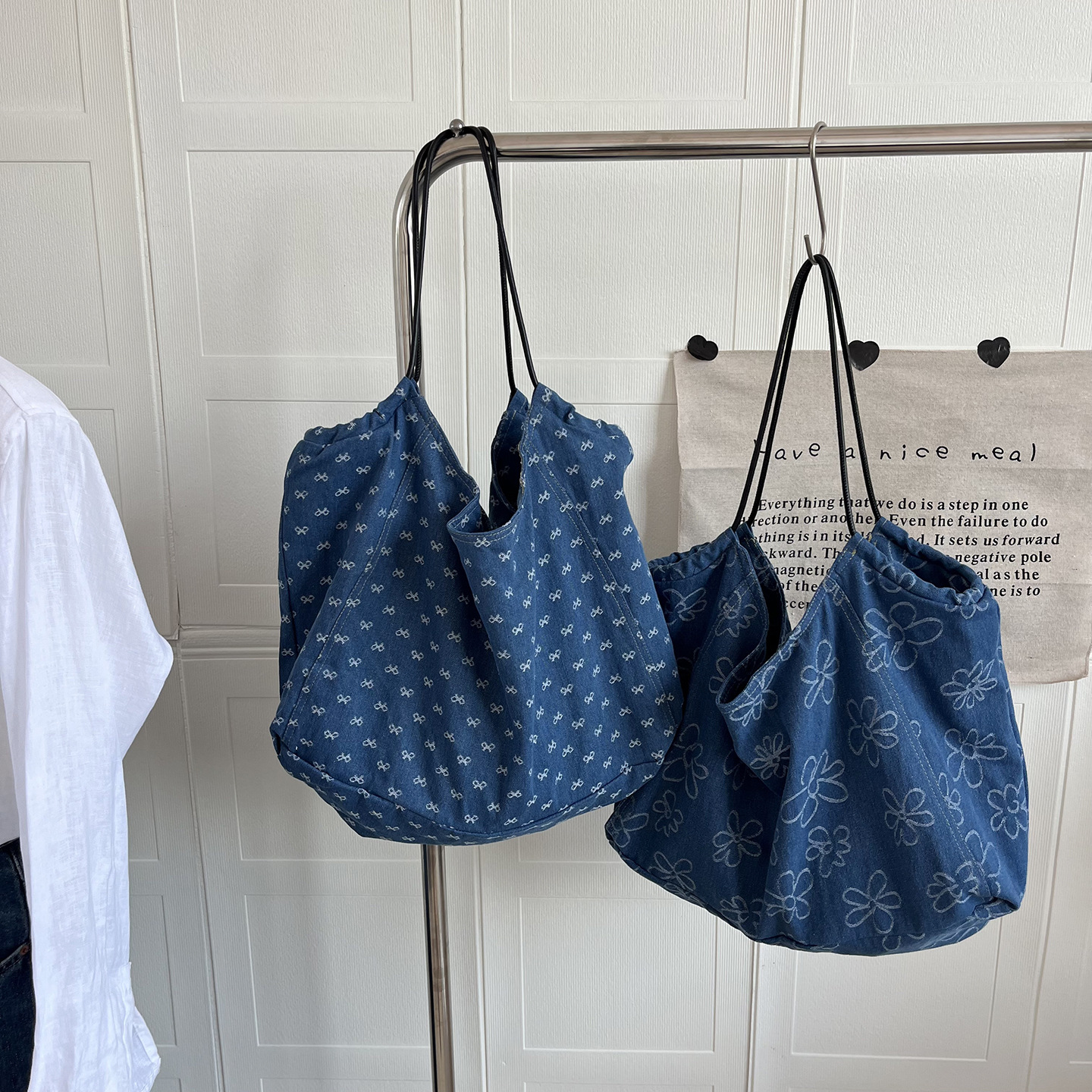 韓国風ウォッシュデニムトートバッグ四季学生クラス通勤大容量ポータブルショルダーバッグ怠惰なキャンバスバッグ