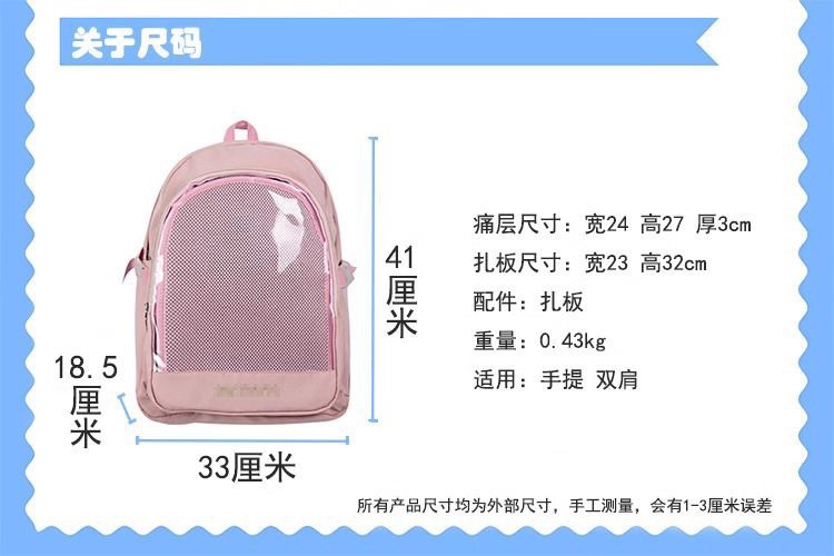 透明人形バッグ 40 センチメートル日本製人形バックパックスクールバッグ中間層学生大容量女の子バックパック痛バッグ