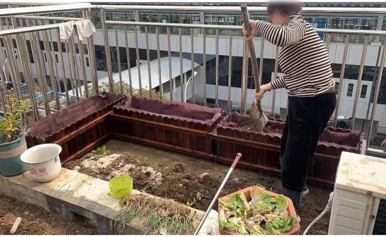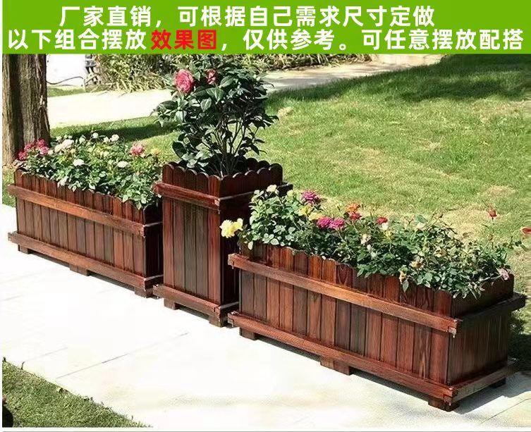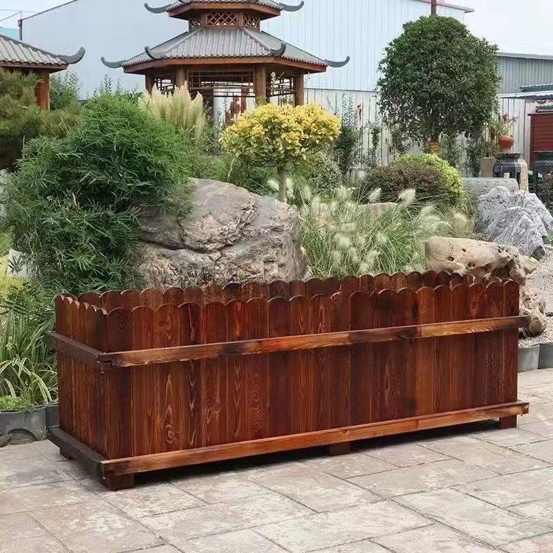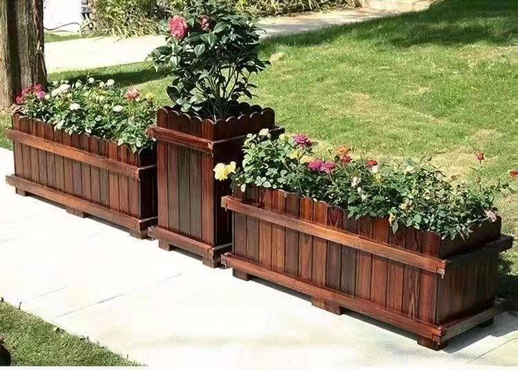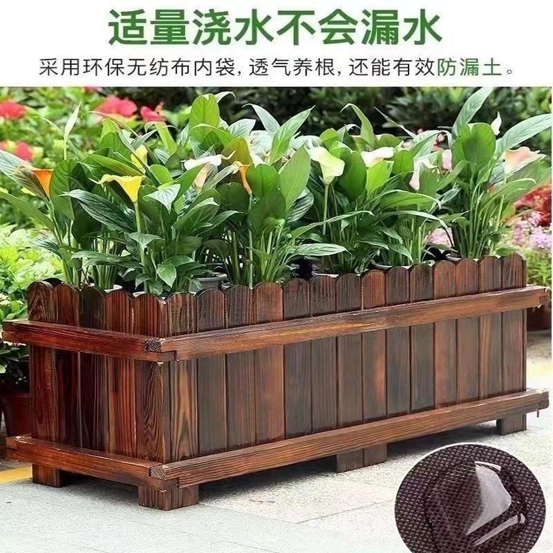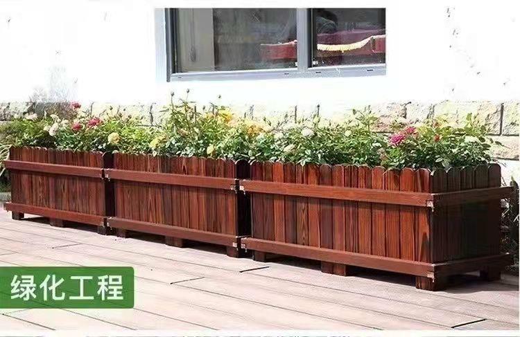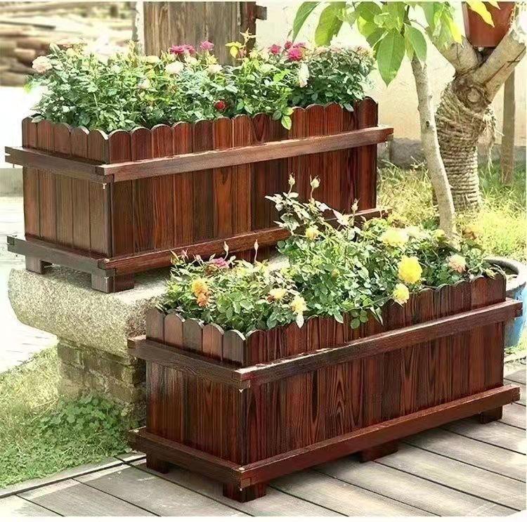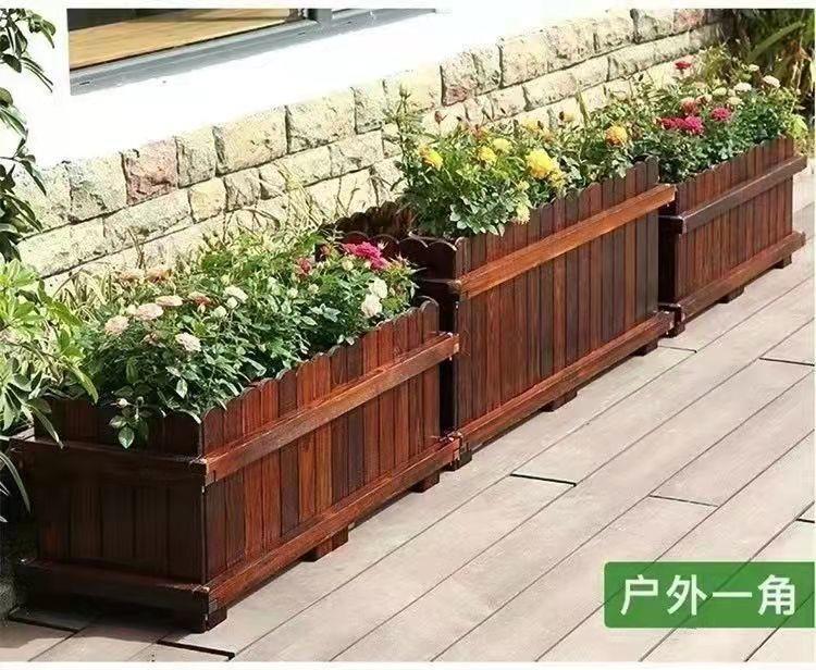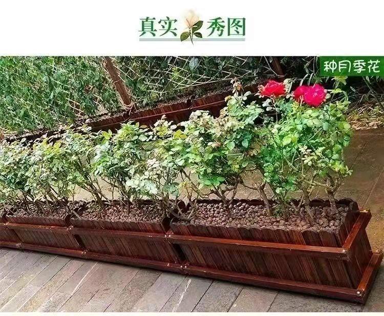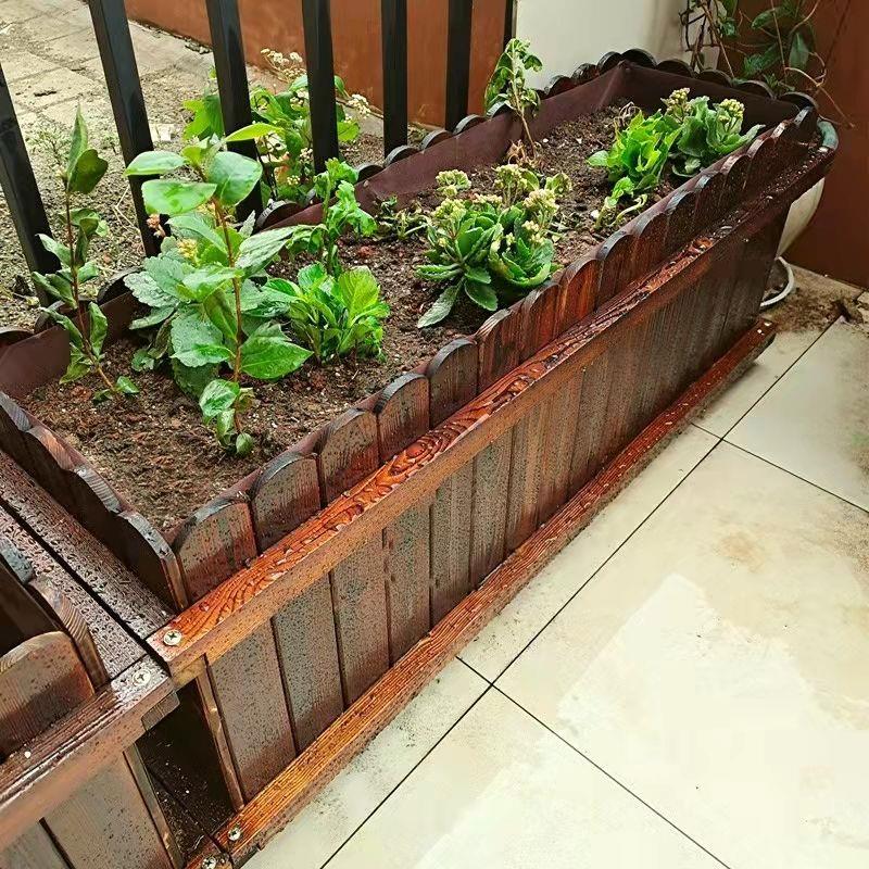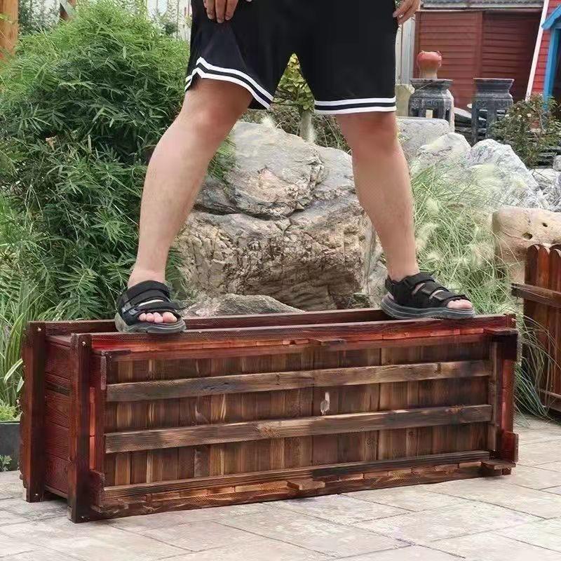 防腐木花箱屋外庭園炭化実木長方形栽培箱屋外植木鉢ベランダ栽培箱花槽