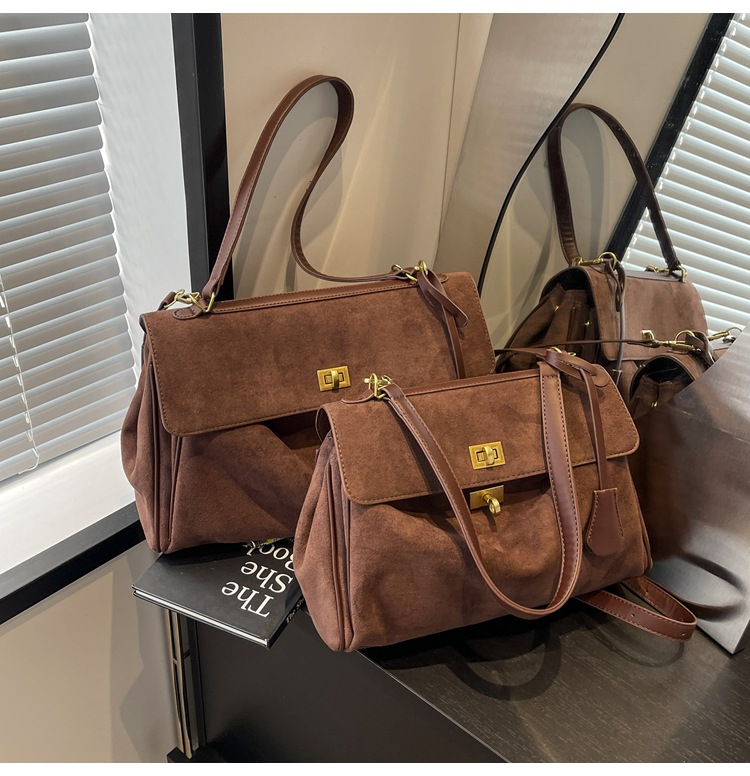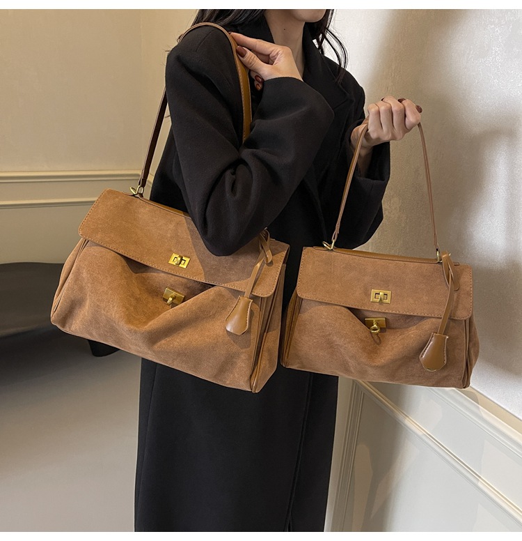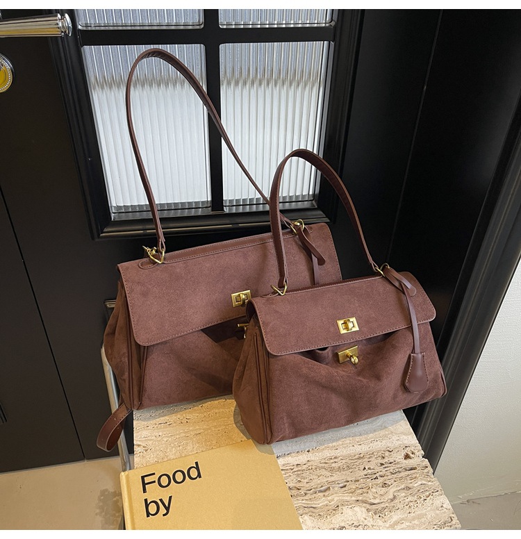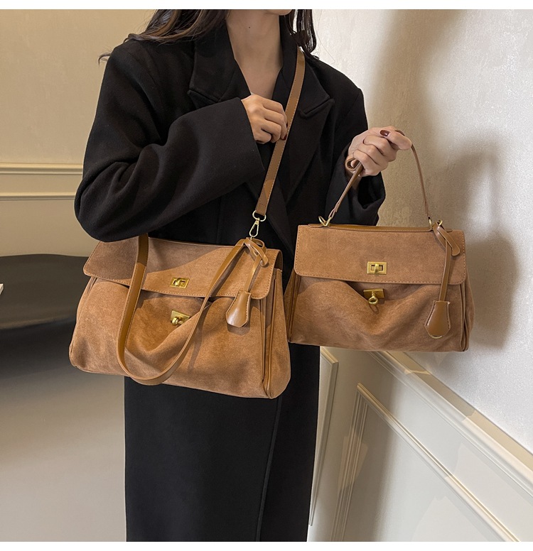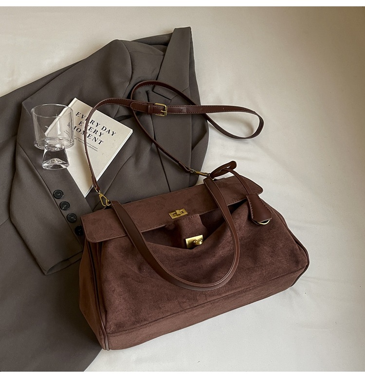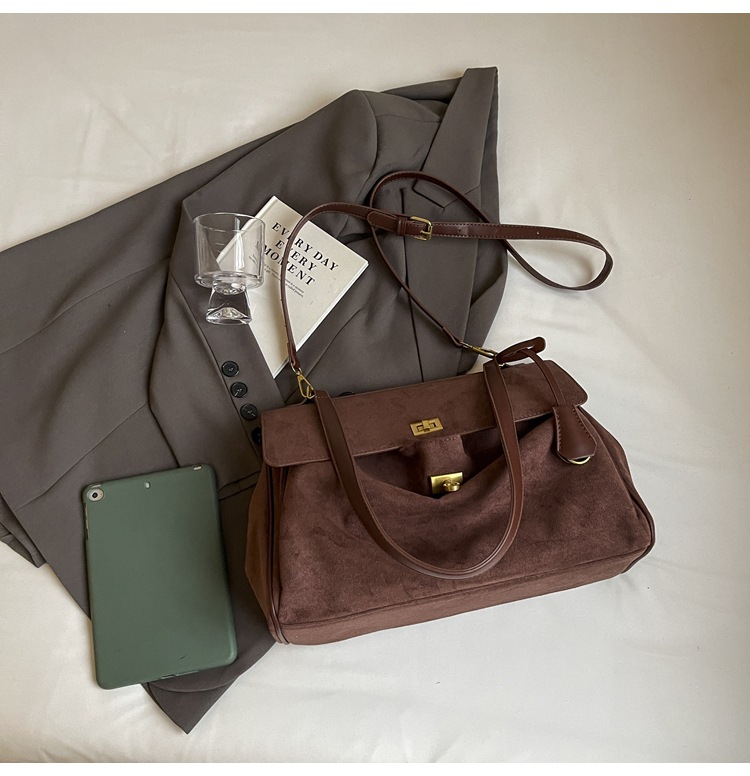 跨境手提托特包韩国小众2025年新款鹿皮绒包包女大容量单肩斜挎包