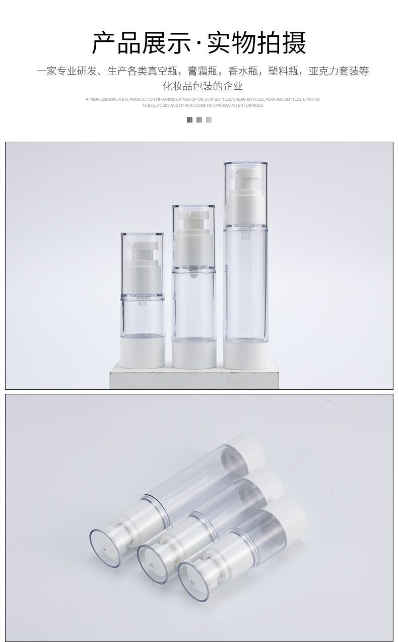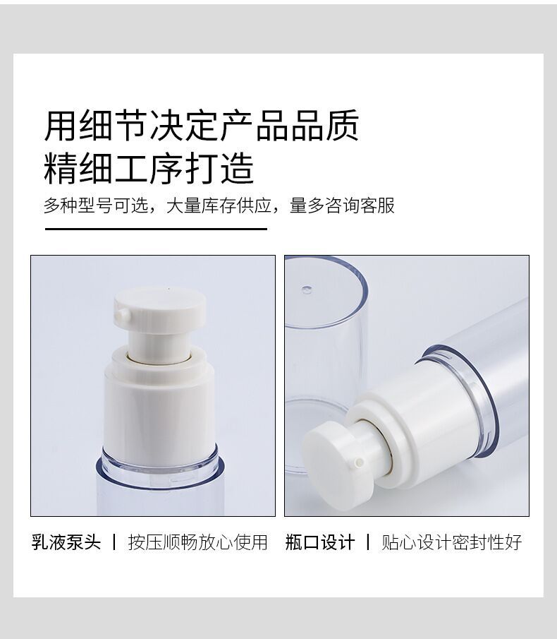 真空瓶是靠内部真空按压喷头喷出,所以瓶内是没有吸管的哦。亲装满瓶后,按压喷头,瓶内的底胶会随着按压使用向上升,直到升到顶部,瓶内的东西用完。用完后,亲用根筷子或笔芯把底胶推下去即可再次使用哦。.真空瓶适合装贵点的东东.隔绝空气,防止污染,一点不浪费.有了真空瓶从此再也不用担心片状。