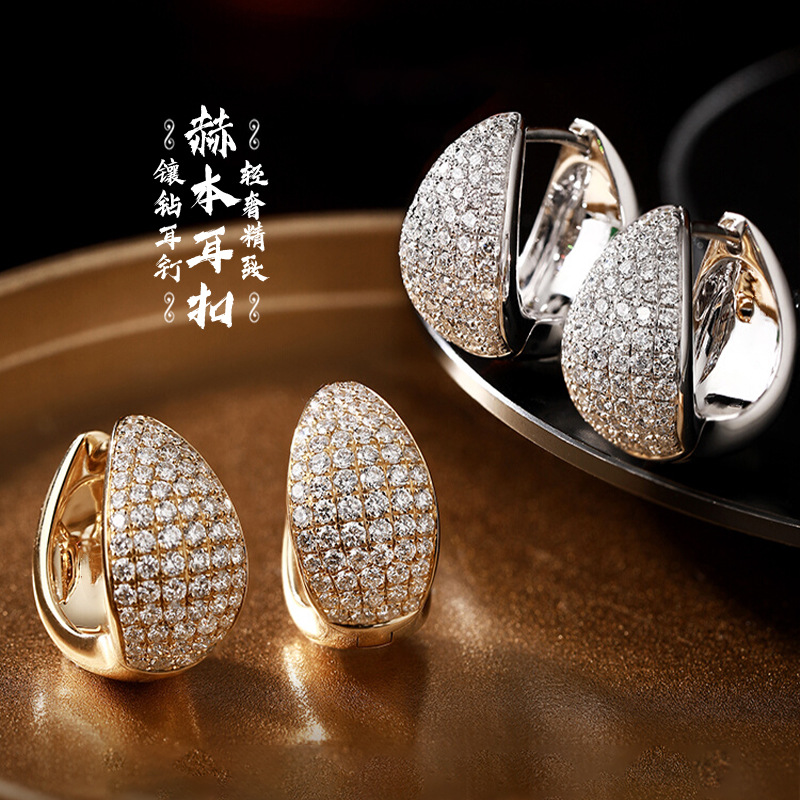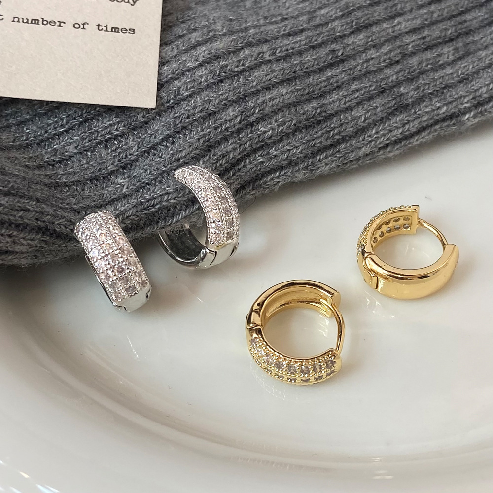 2025年新款满锆圆圈耳扣潮流超闪精致锆石耳环小众设计感轻奢耳饰