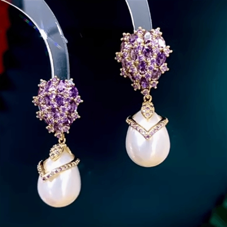 新高級雪花ジルコン優雅真珠925銀針イヤリング