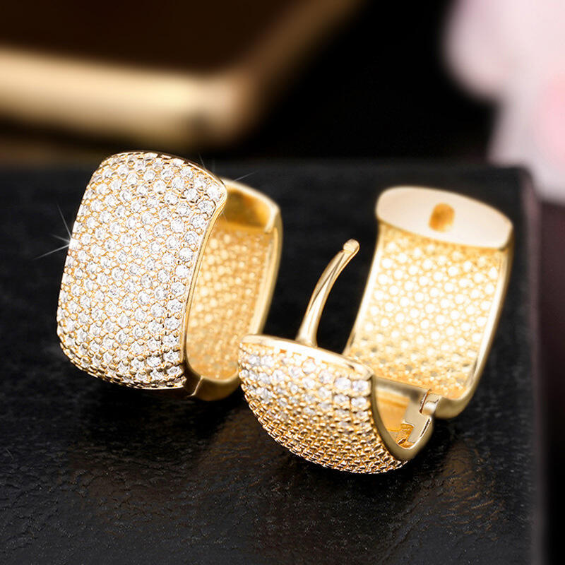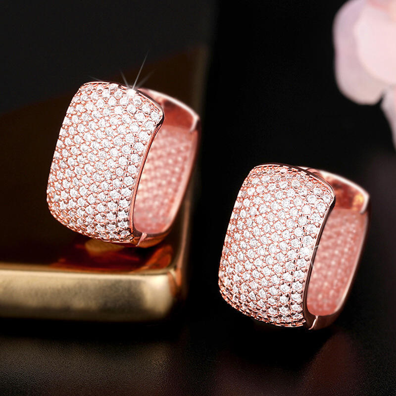 曹适超闪女士满钻耳钉 欧美时尚简约个性耳饰 冷淡风百搭方形耳扣