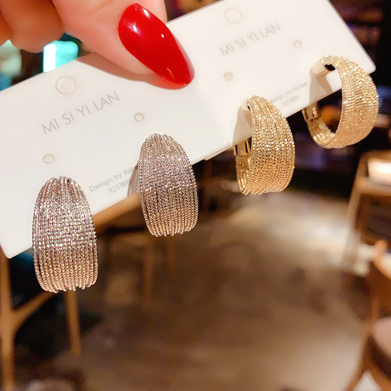 韓国の誇張された金属リングイヤリング女性の個性的な贅沢なイヤリングの小さなデザイン感ピアスs925銀針ピアス
