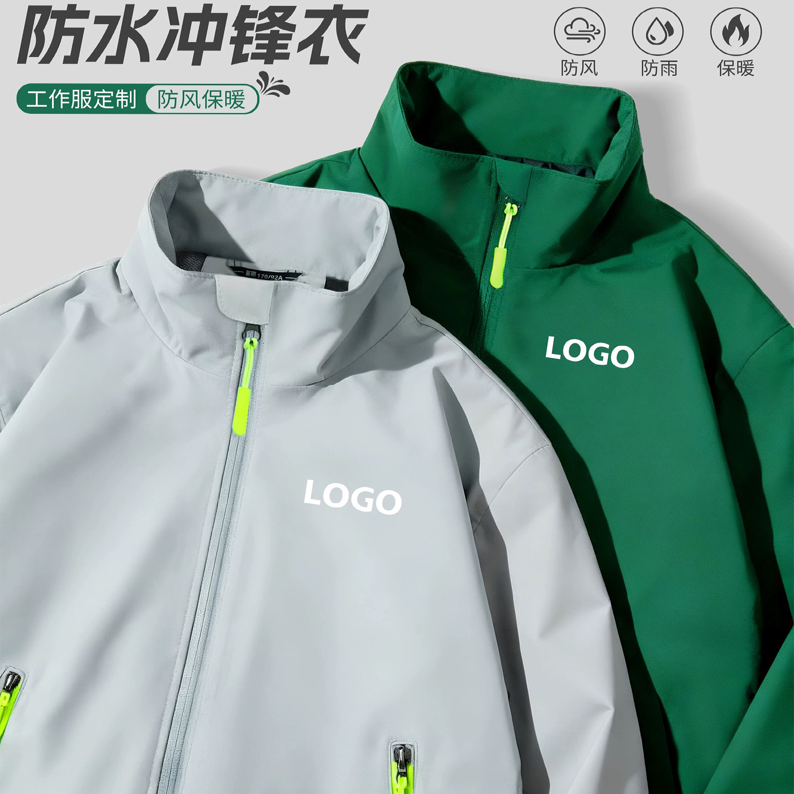 防水冲锋衣定制工作服印字logo刺绣企业团体工装立领夹克防风外套