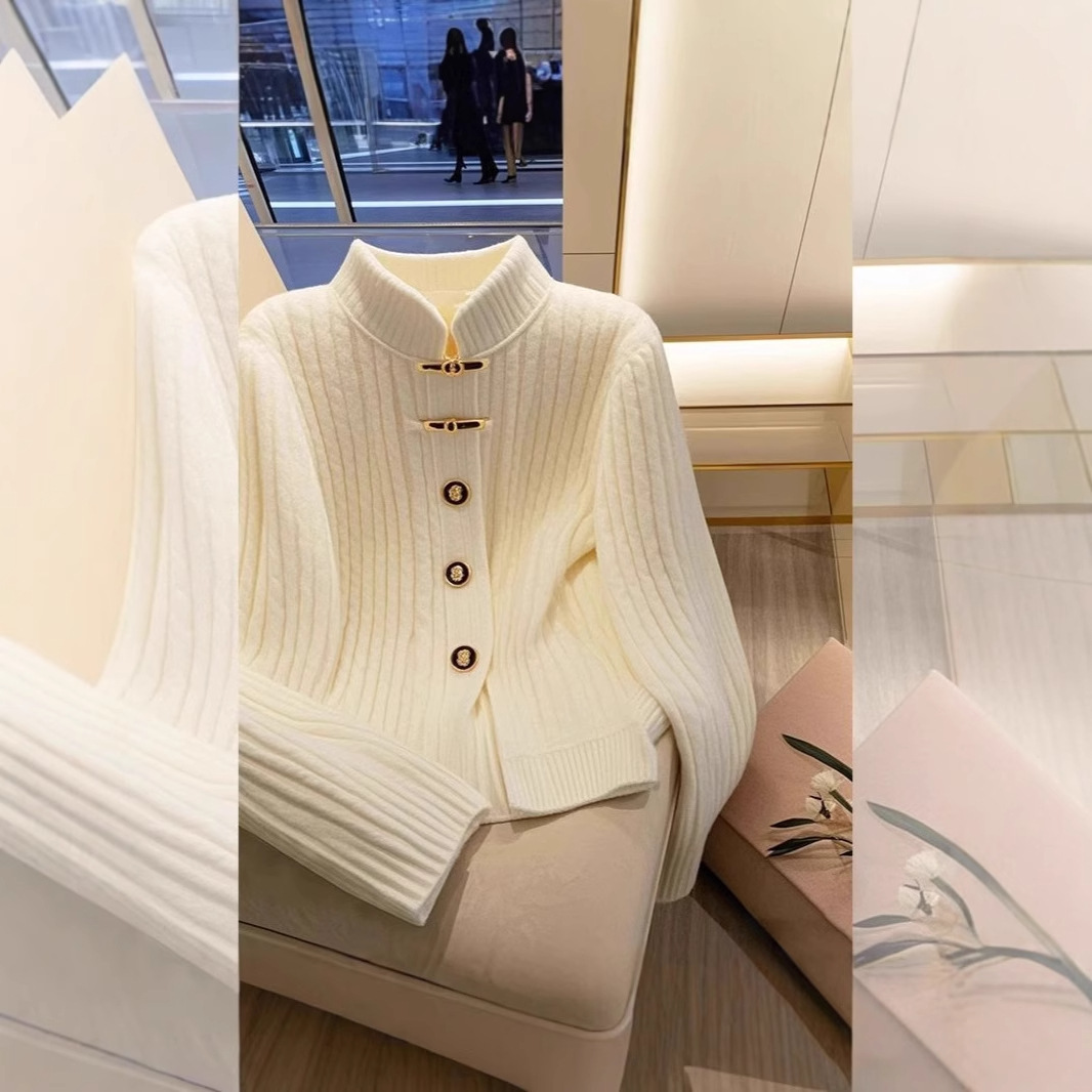 秋冬高级感穿搭小香风针织开衫上衣女独特超好看白色毛衣短外套女