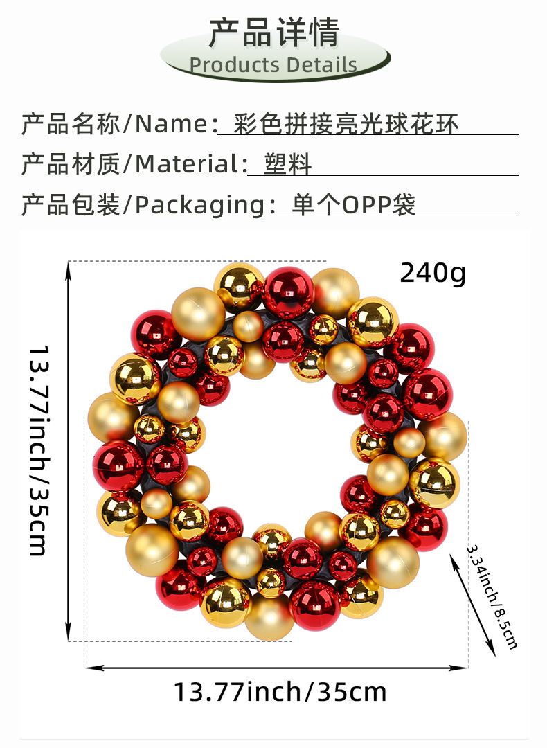 香港の恋の新型クリスマスボールの装飾の花輪のカラーは光るボールの花輪の壁をつづり合わせてホテルを掛けて扉を掛けます。