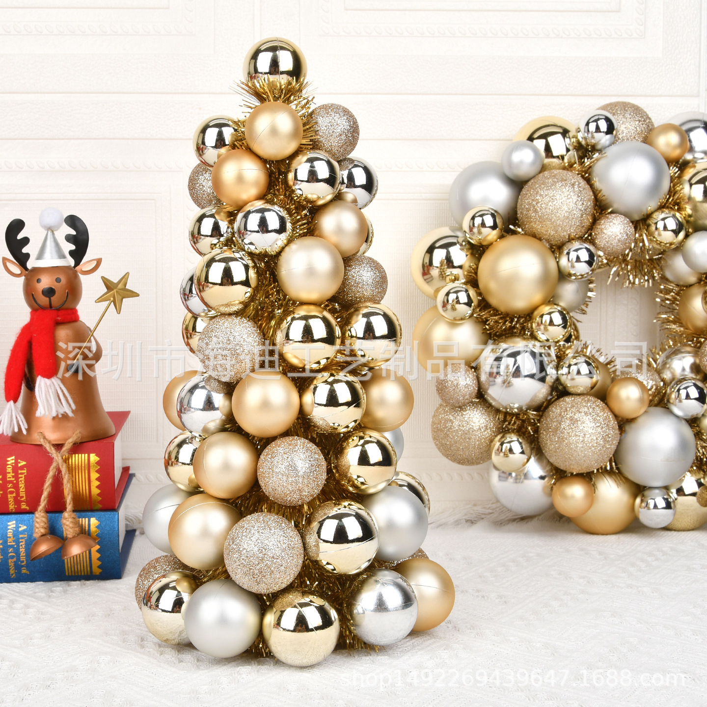 圣诞装饰场景布置香槟金色球塔花环球串挂饰摆件橱窗桌面美陈摆设