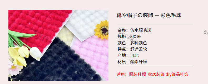 3cm仿水貂毛球饰品diy古风发夹发饰水貂盘扣服装围巾鞋帽辅料现货