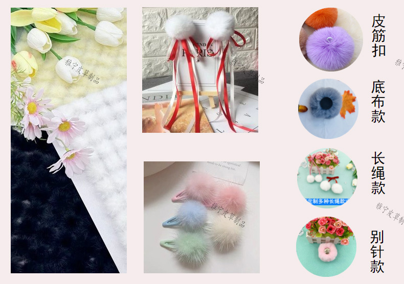 現物卸売り3センチミンク毛玉皮草Diy手作り頭飾りミンク毛盤留め子供髪飾り