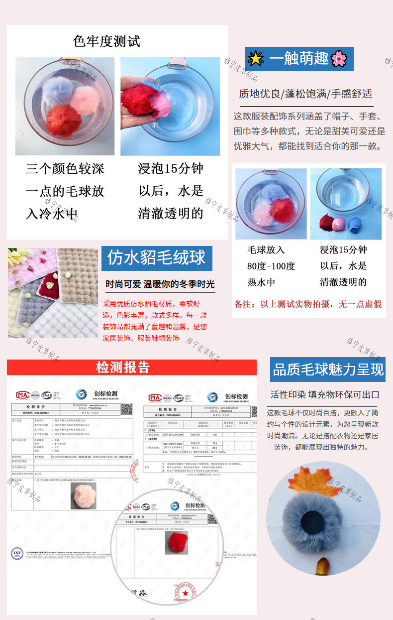水貂毛球diy3cm毛球贴片貂毛制作发饰发夹绒球diy毛绒球绒毛球