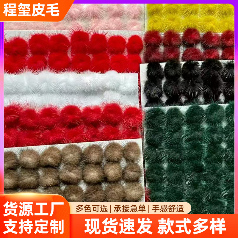 3CM真毛水貂毛球半圆平底水貂盘花DIY围巾服装饰品配件圣诞挂件