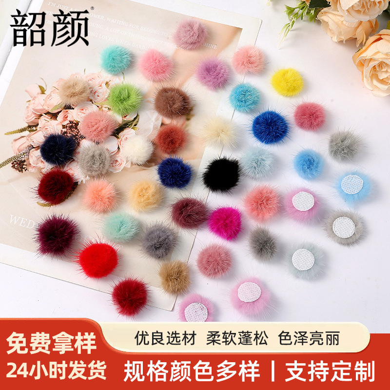 工場現物の3cmミンク毛盤留め具diy髪飾りミンク毛玉アクセサリーミンク毛玉
