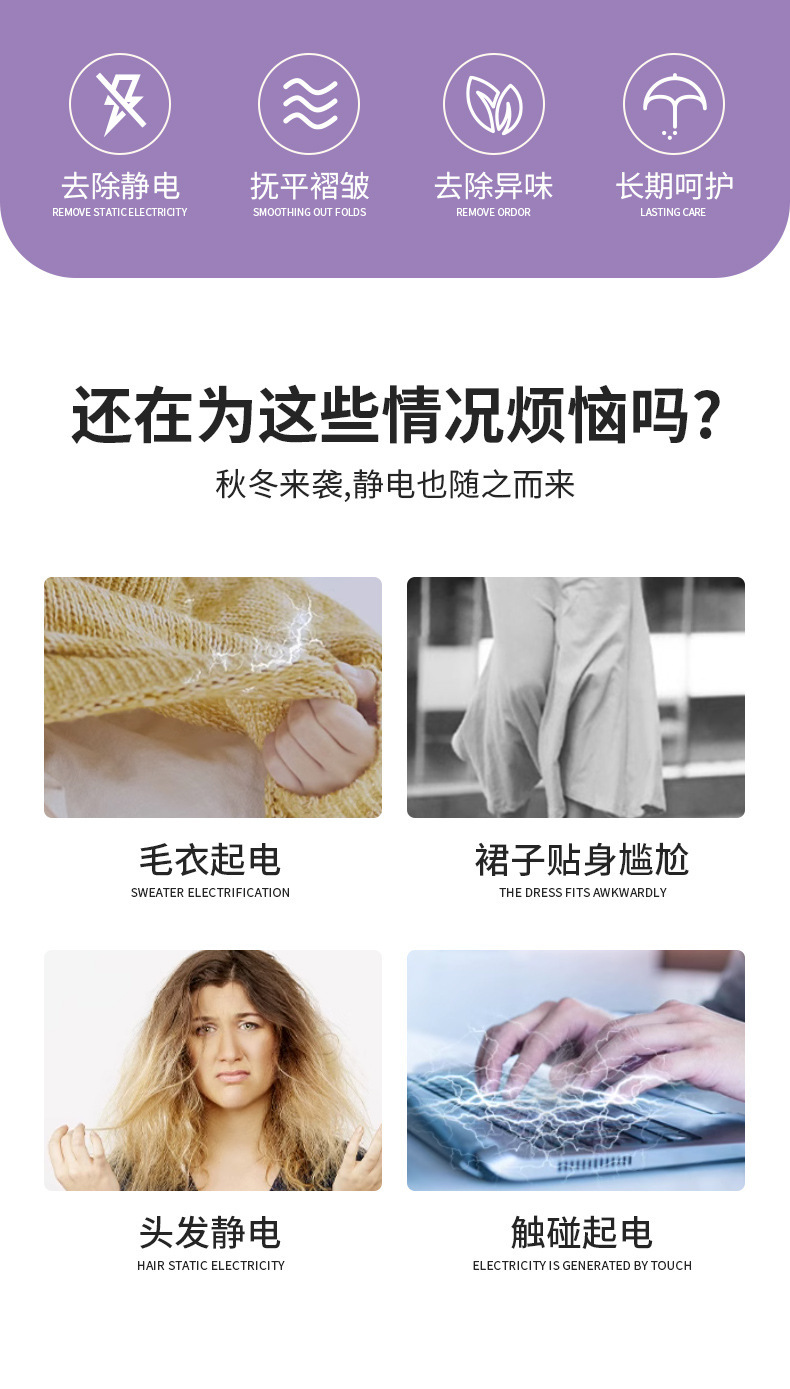静電気防止スプレー服髪静電気除去洗濯液柔軟剤しわ除去服セーター静電気神器