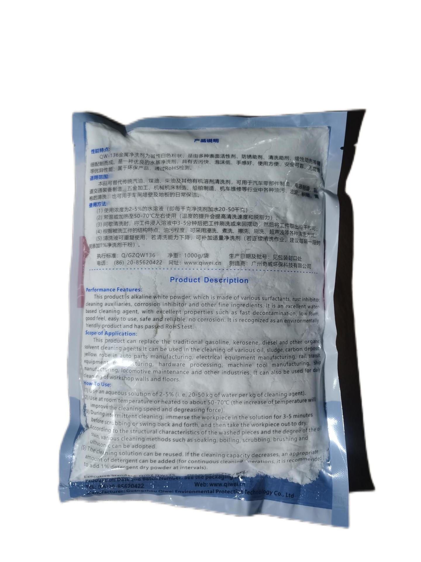 包装:本品有1公斤/袋的粉剂包装,20袋/箱。本品还有20公斤/袋的大袋装;也有25公斤/桶的液状除油剂。
