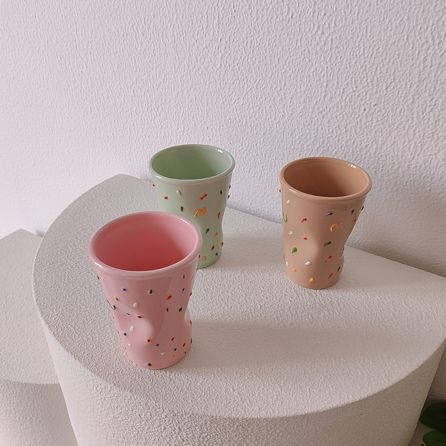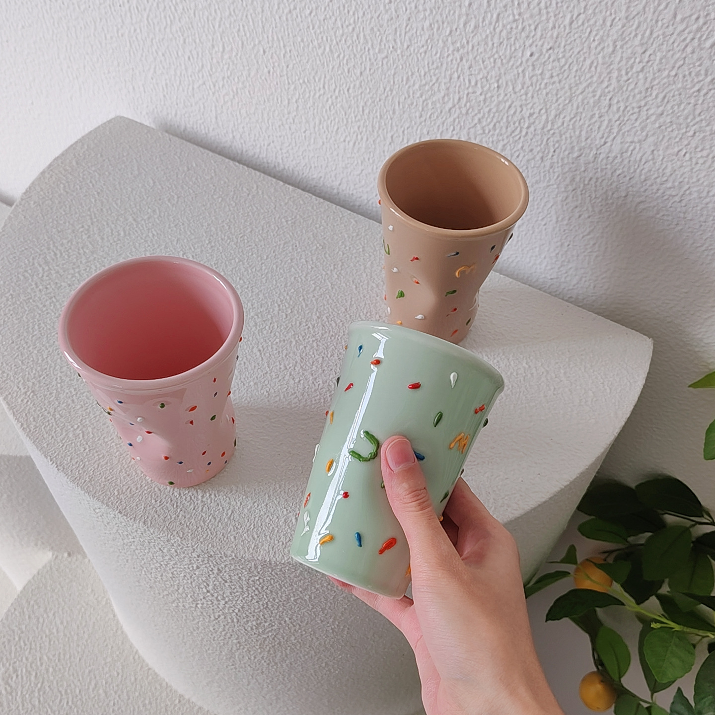 美ラード色食器フレンチ不规则セラミックコーヒーカップしわデザインカラーホットドリンク水カップ高级感