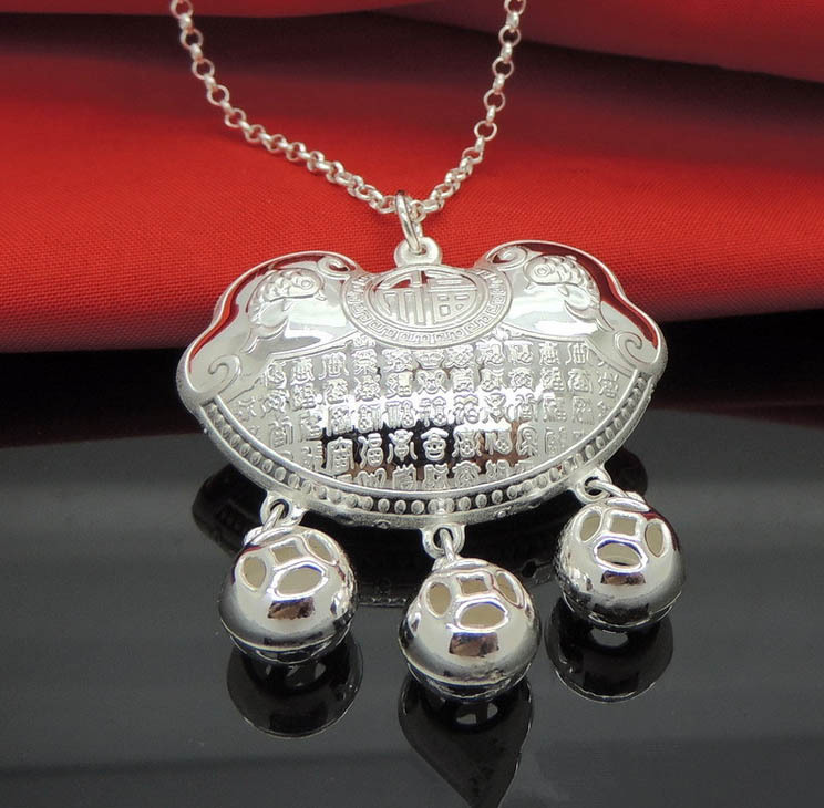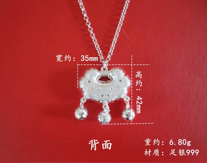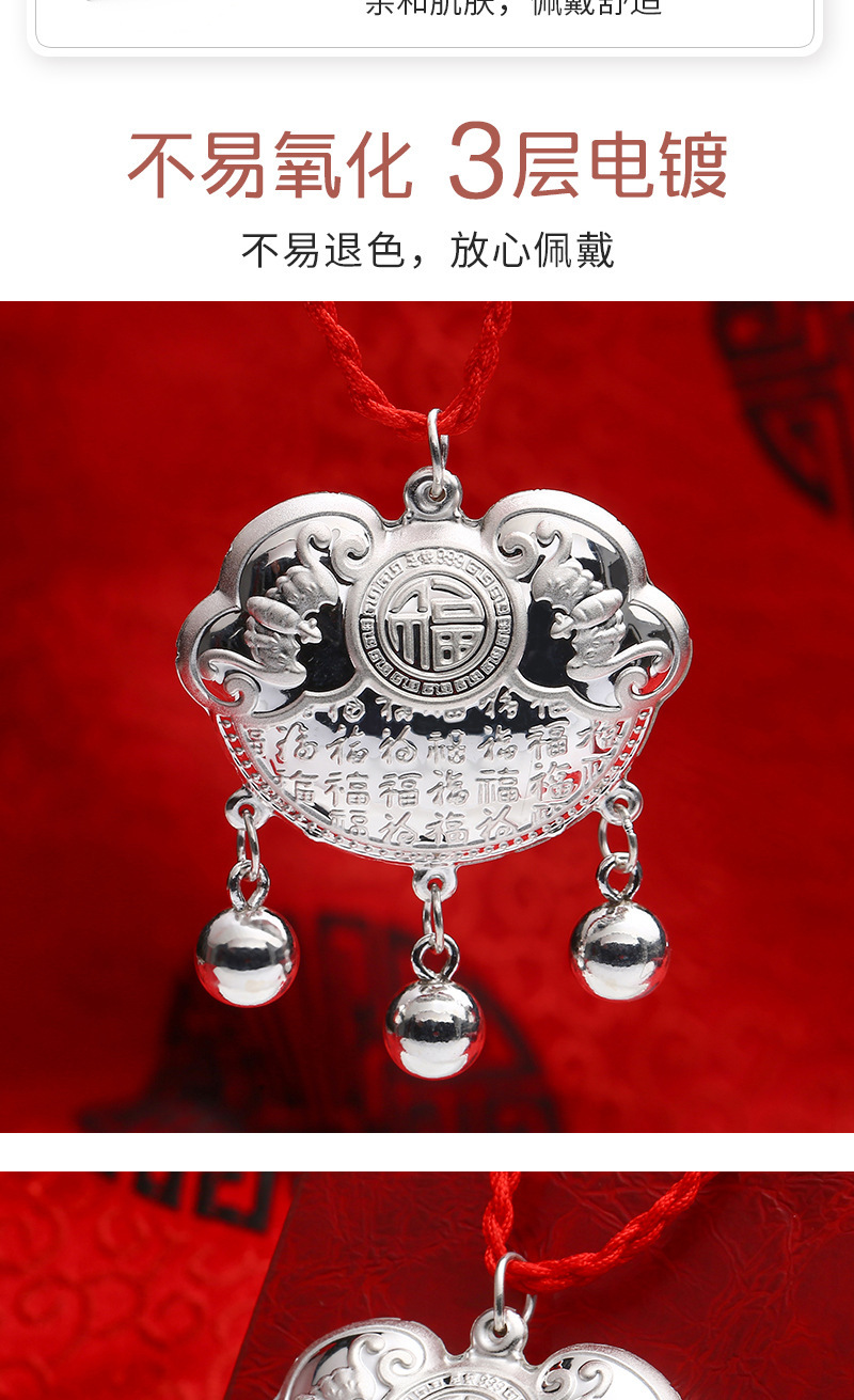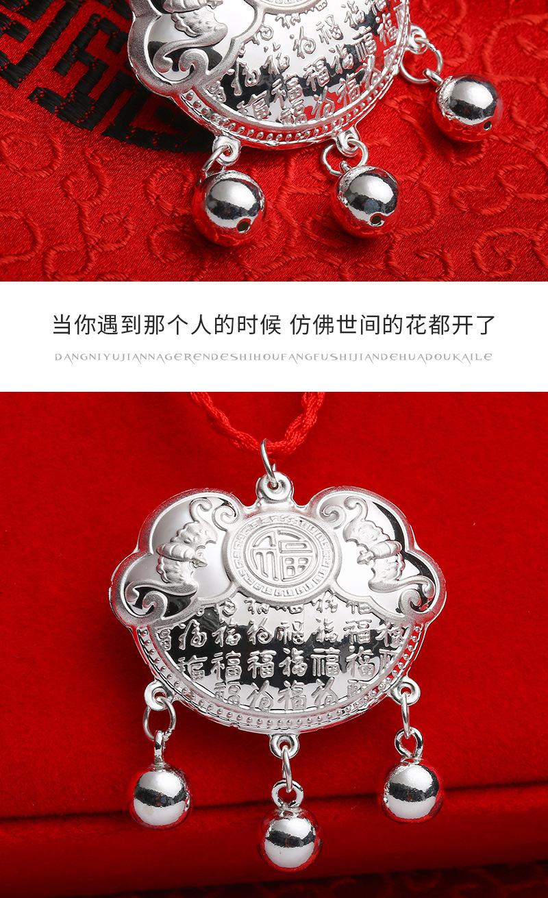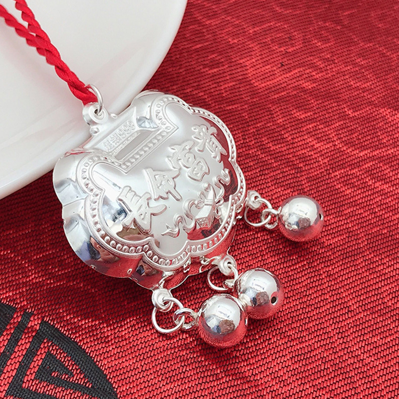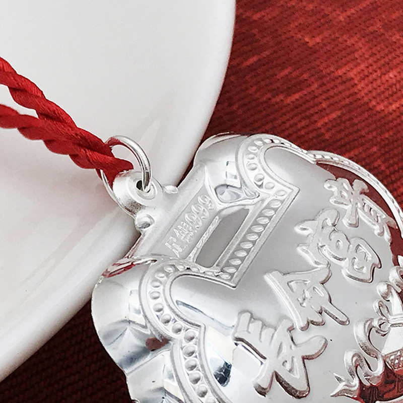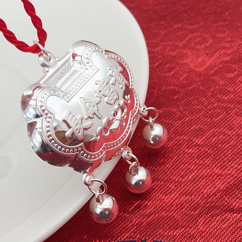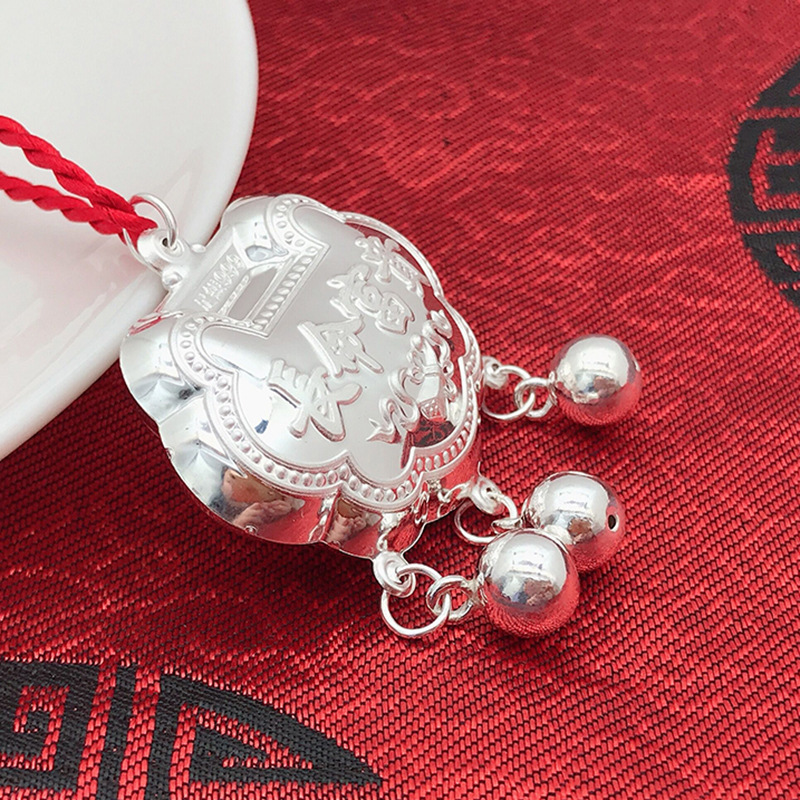 999純銀長命ロック赤ちゃん透かし彫りネックレスペンダント子供大人平安ロックセーターチェーンカップル銀アクセサリー