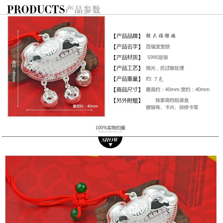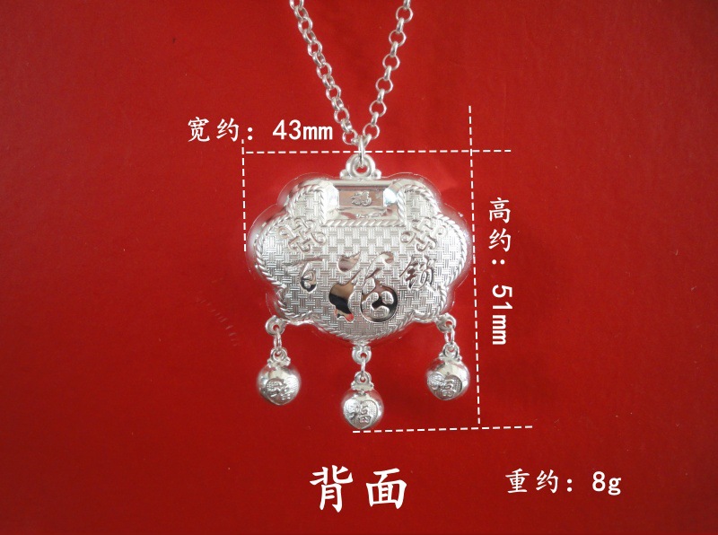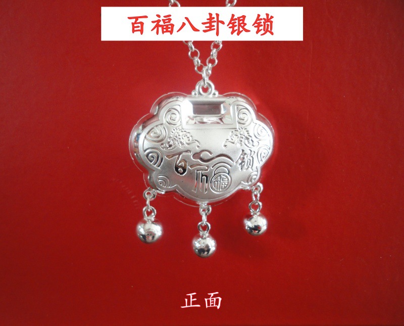 Baifu Xiangrui シルバー ロックは約 8.2 グラム,長寿と富のシルバーロックは約10.5グラム,百福吉祥銀錠 約7グラム,長寿シルバーロック 約9グラム,百福八卦銀錠 約9グラム,百福の祝福の銀錠は約7.6グラム,長寿の富と百福のロックは約8グラム,ハッピーベイビーシルバーロック 約7.5グラム,毎年の安全なシルバーロックは約6.8グラムです,チェーン付き純銀ロック、半円パールチェーン、約5グラム