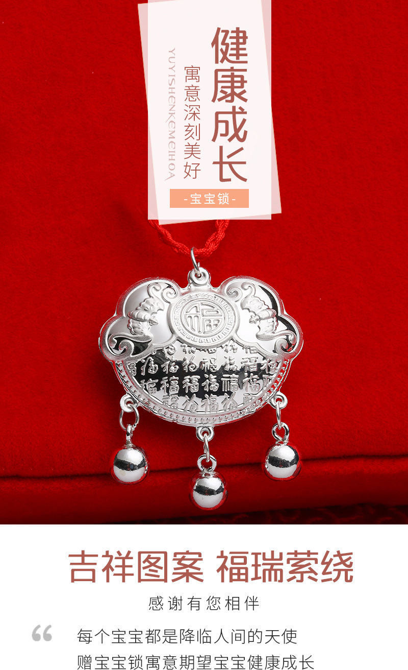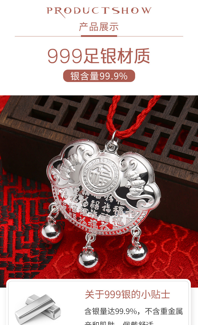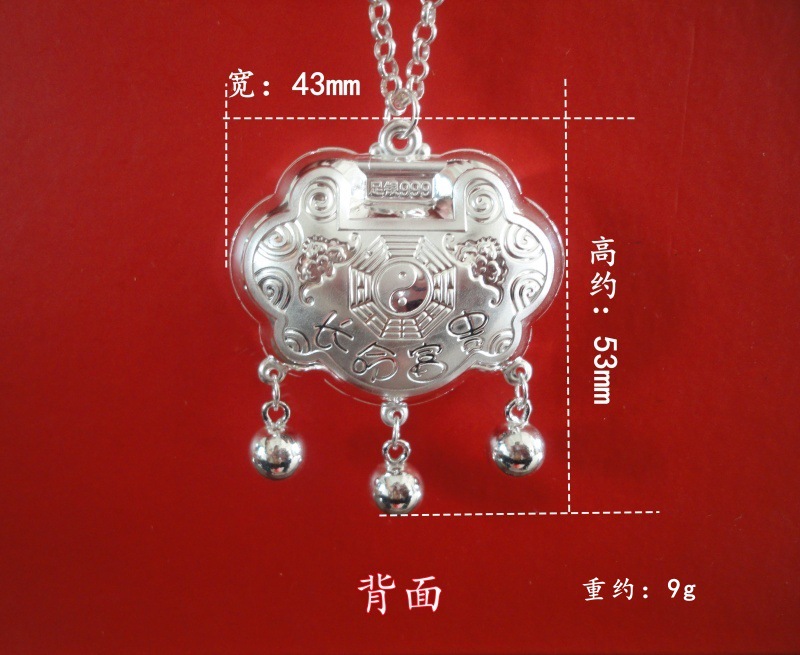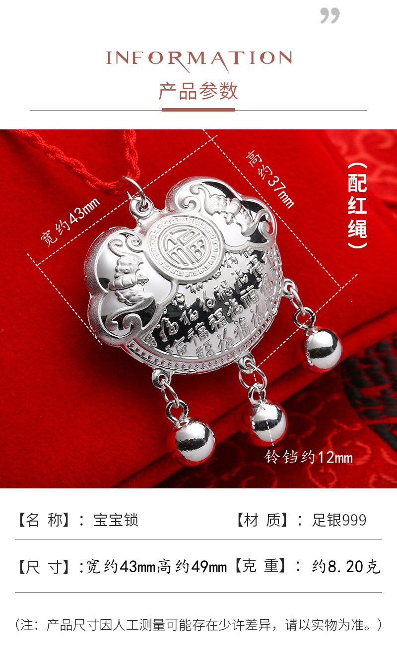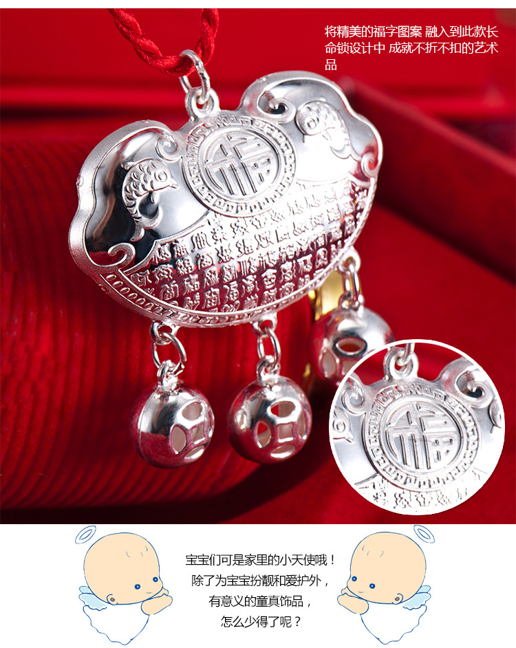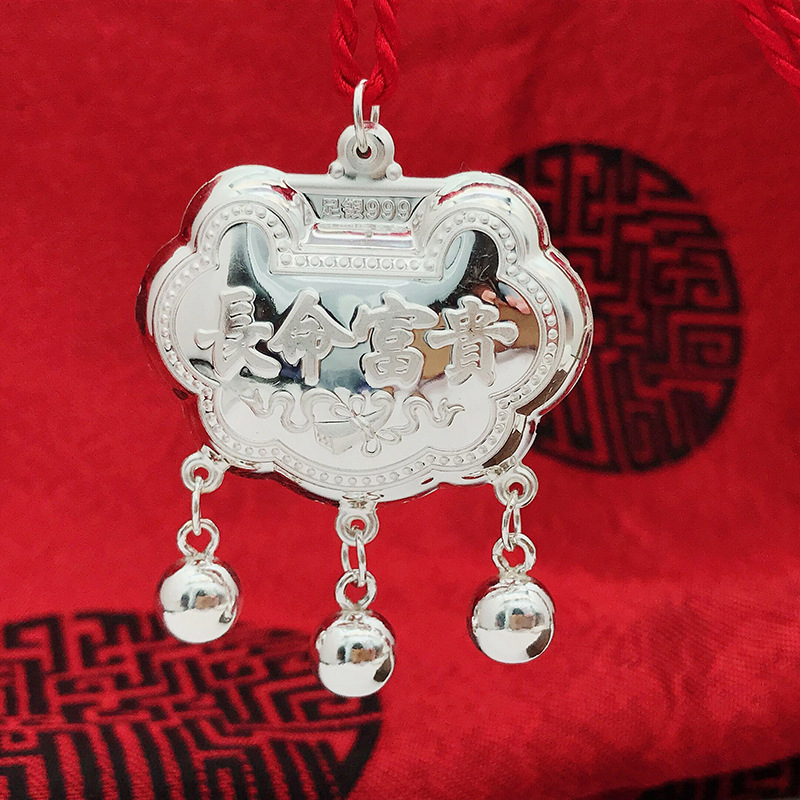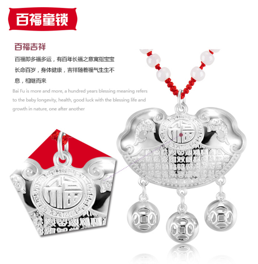 宝俊s 999純銀百福長命富貴錠ペンダント男女赤ちゃん銀錠満月満歳誕生日プレゼント