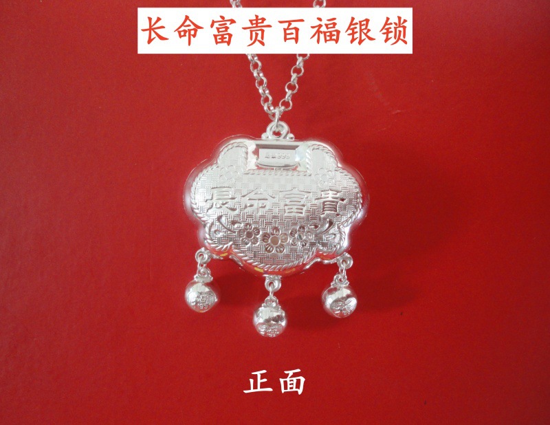 銀大福S999純銀百福長命富貴錠ペンダント男女赤ちゃん銀錠満月歳誕生日プレゼント