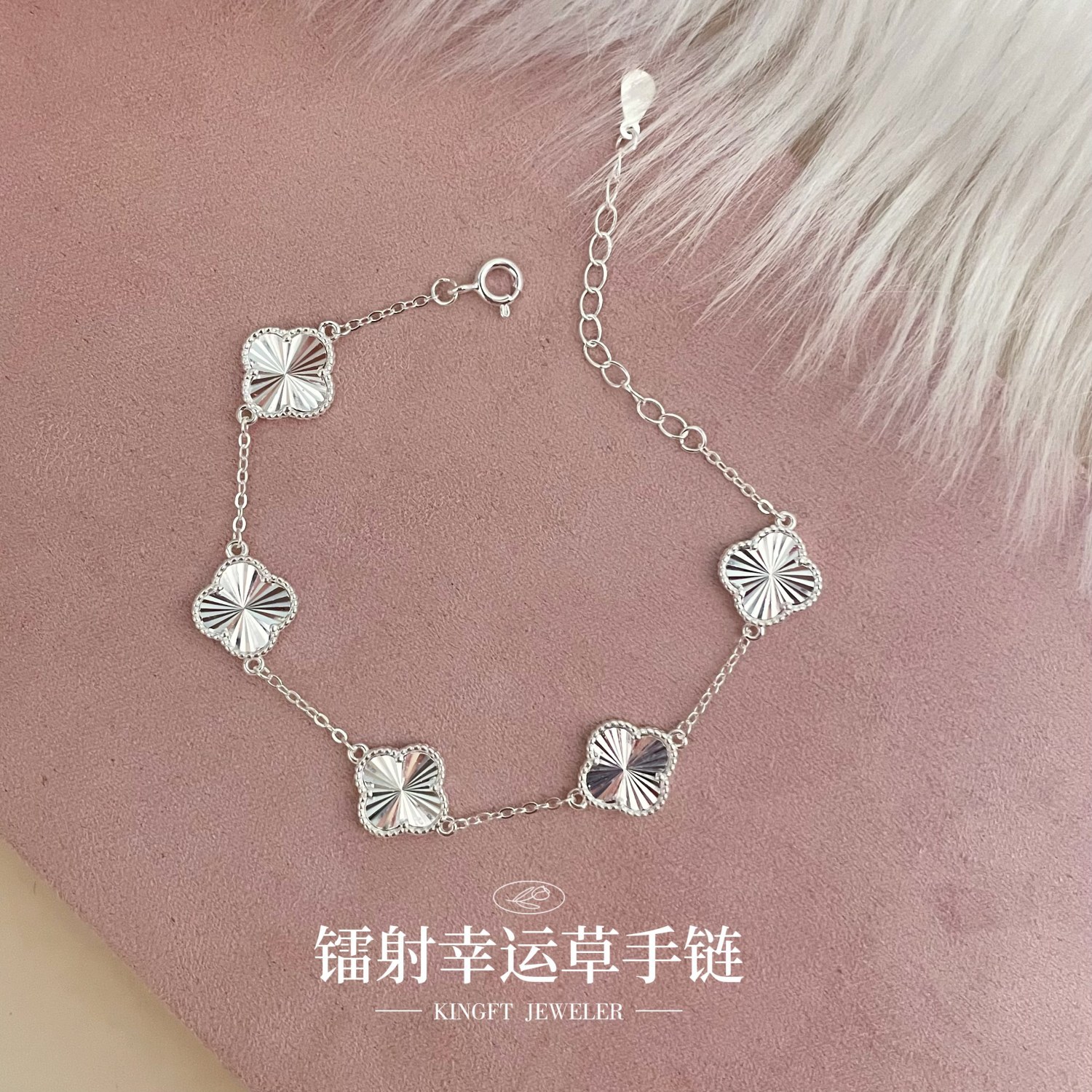 四つ葉の銀のブレスレットの女性の純銀の五花のレーザーは足の銀のブレスレットを発射します。