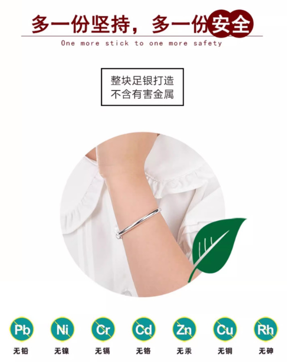 純銀999経典のブレスレットの光沢面は中実のシンプルな素輪の若いタイプを押して彼女の銀の腕輪を送ります。