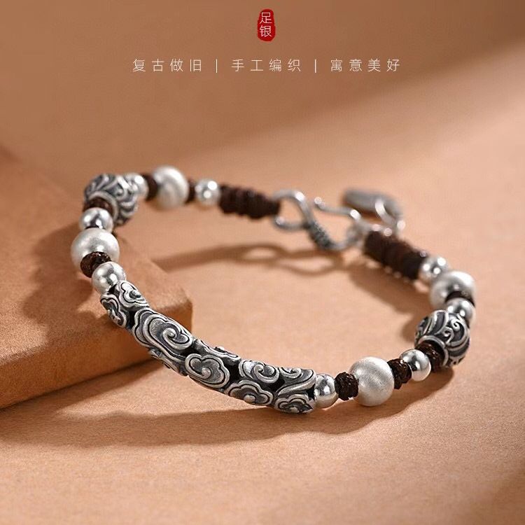 宝俊銀装飾足銀999曲管祥雲編みブレスレットファッションレトロ新商品代理