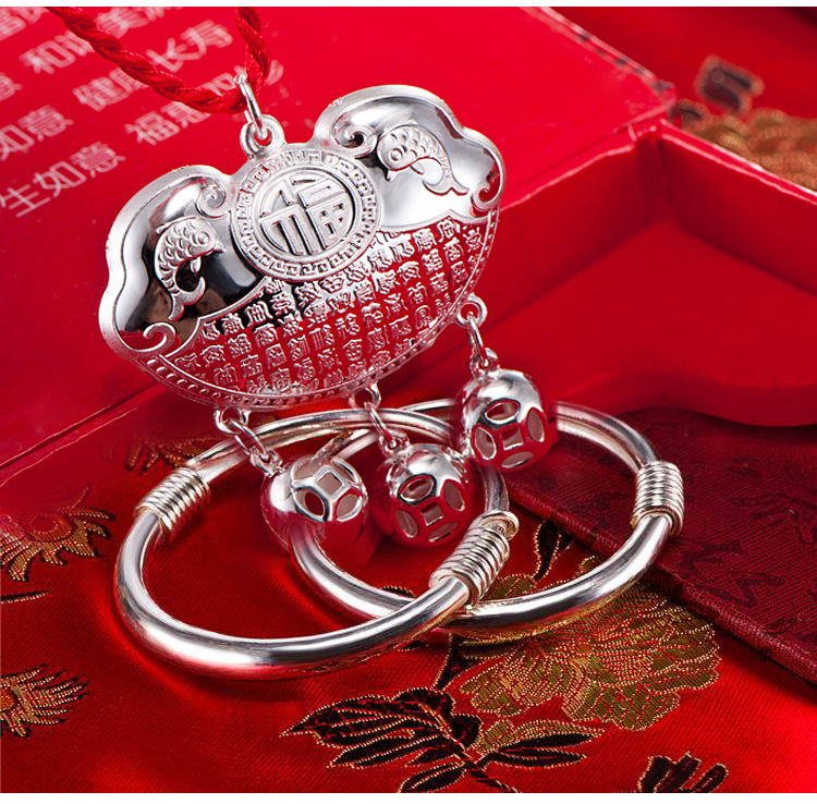 999純銀百福の赤ちゃんの長命は竜年の新入生の子供の満月の無事な鍵をロックします。