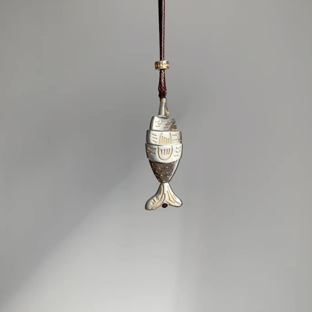 中古vinage冷淡风银色拼接小鱼项链简约小众设计长款秋冬毛衣链