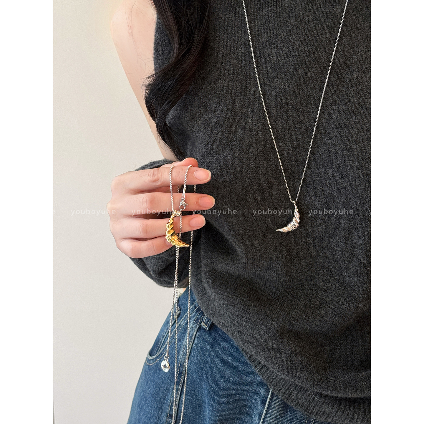 韩系简约金色牛角包抽拉项链女秋冬高级感长款挂脖毛衣链百搭配饰