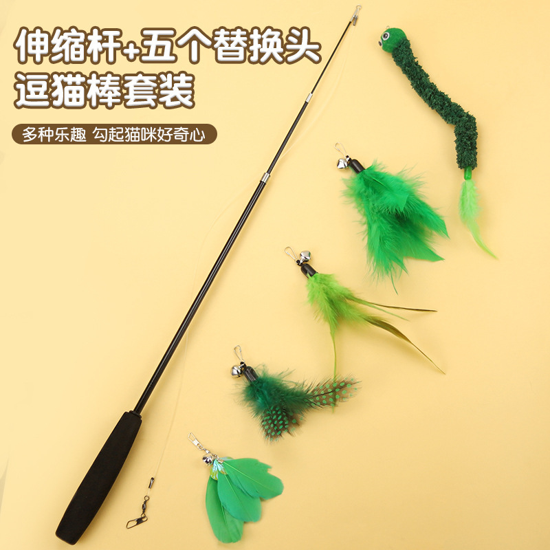 猫のおもちゃは猫の棒のおもちゃのセットの羽の鈴の毛虫の長い竿の猫の子供の猫の用品の猫を笑わせます。