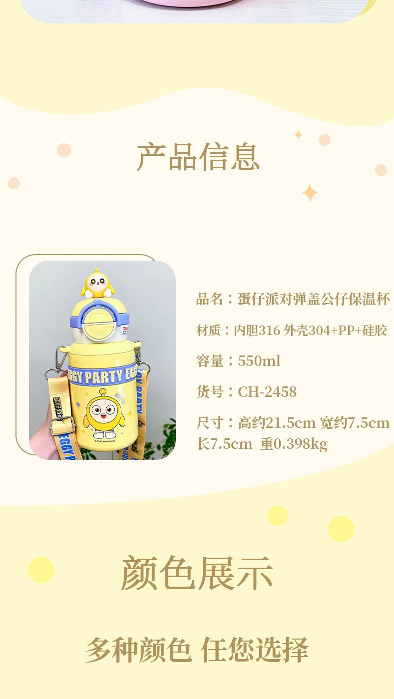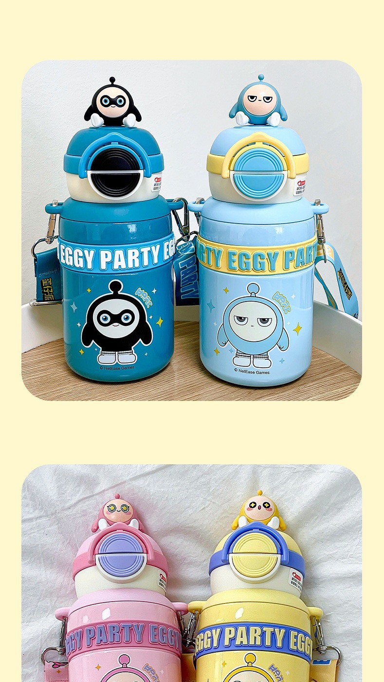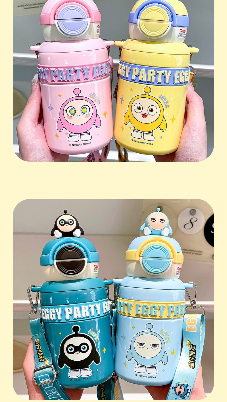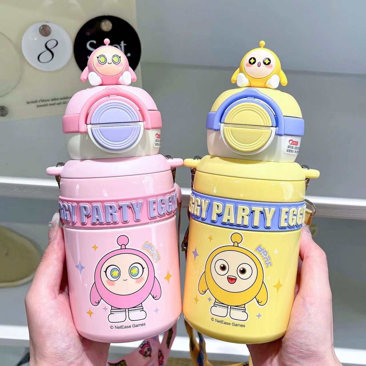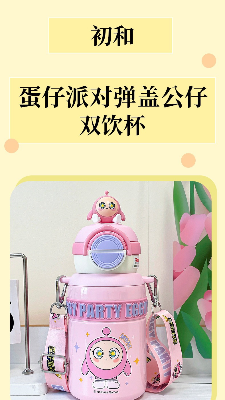 卵仔パーティー弾蓋公仔保温カップ小学生通学専用食品級男女の子ストロー二重飲料カップ