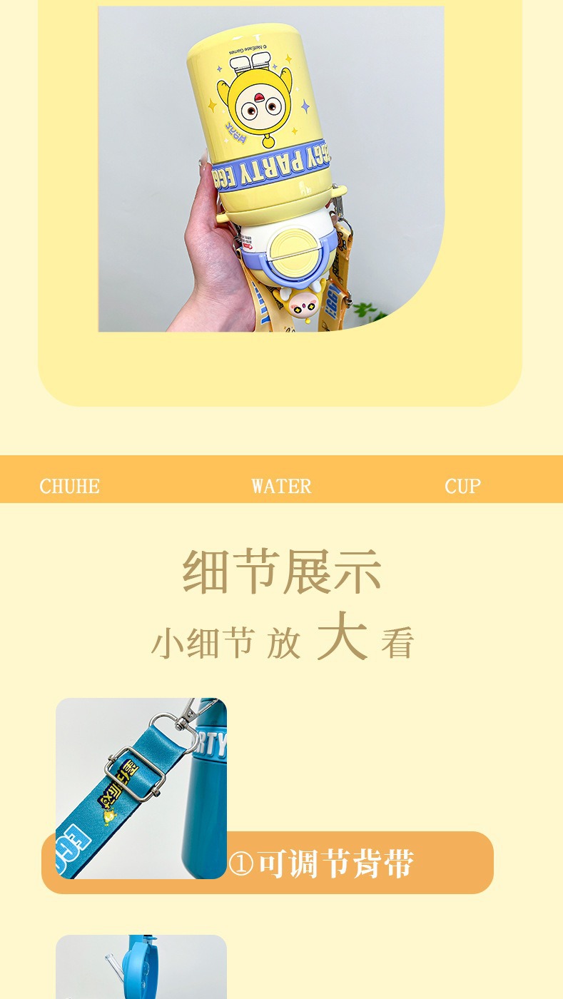 大容量カップシンプル子供かわいい幼稚園小学生ストローカップ便利なプラスチックアニメ斜め掛けストラップ