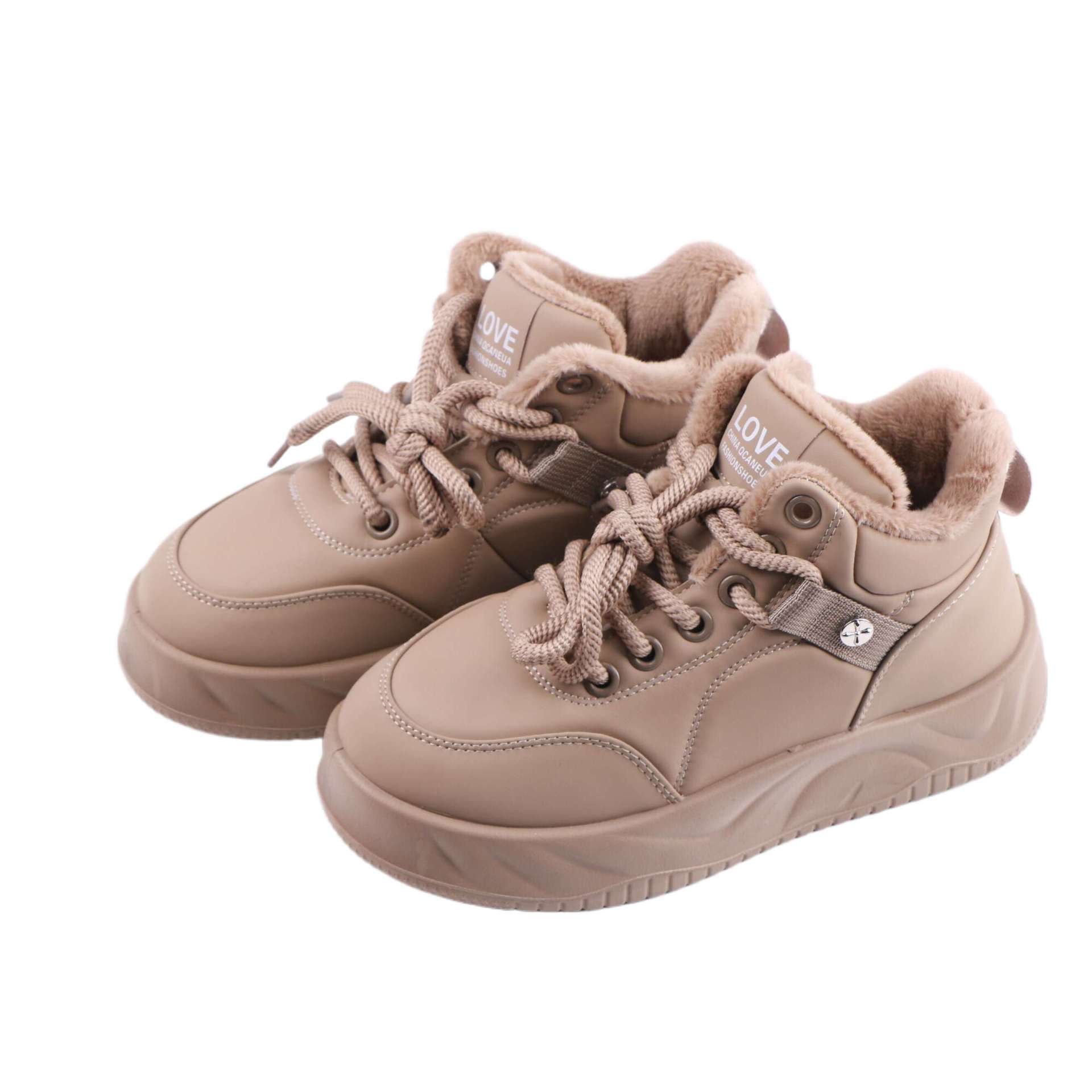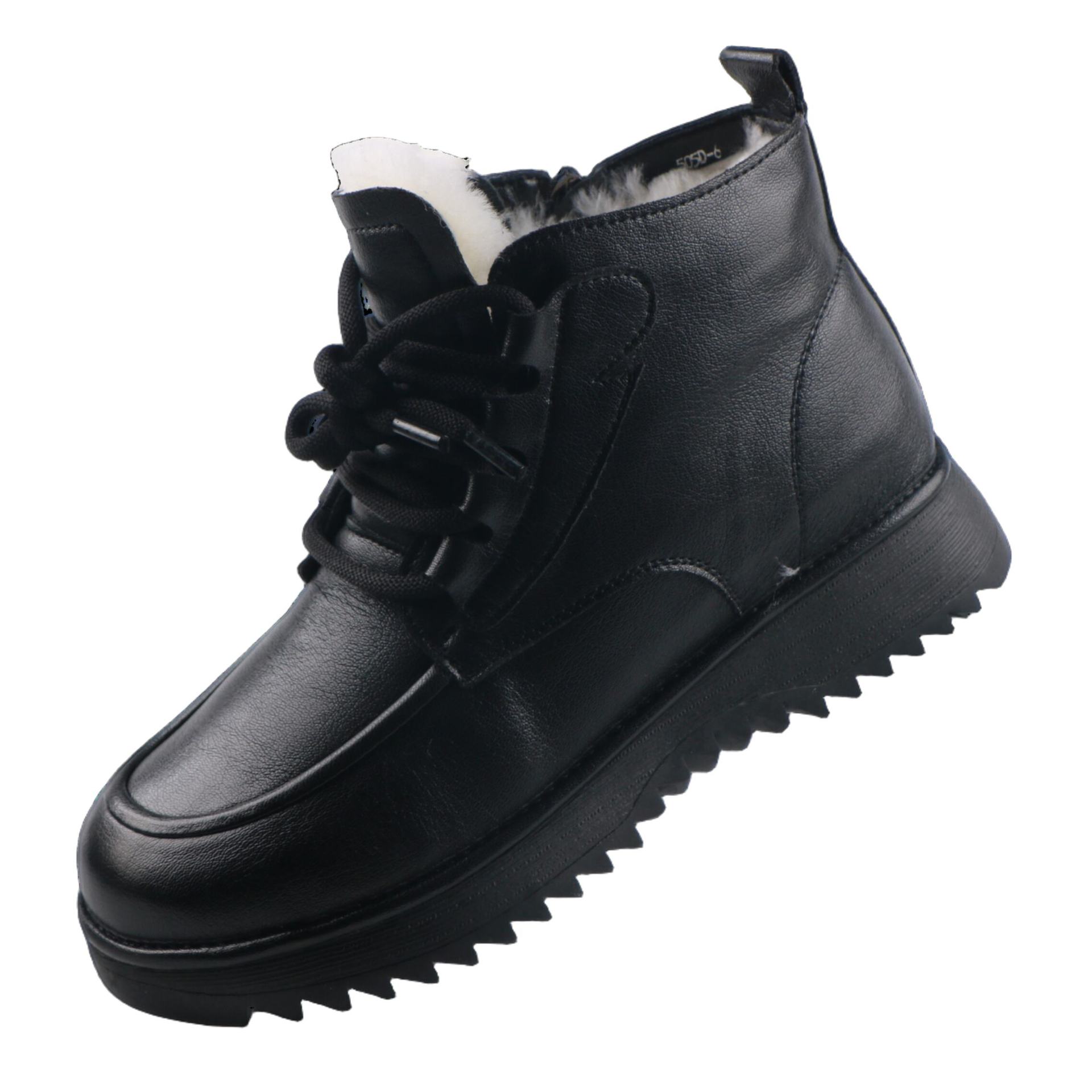 羊毛内里棉鞋女中老年妈妈鞋冬季加绒加厚中帮休闲皮鞋系带短筒靴