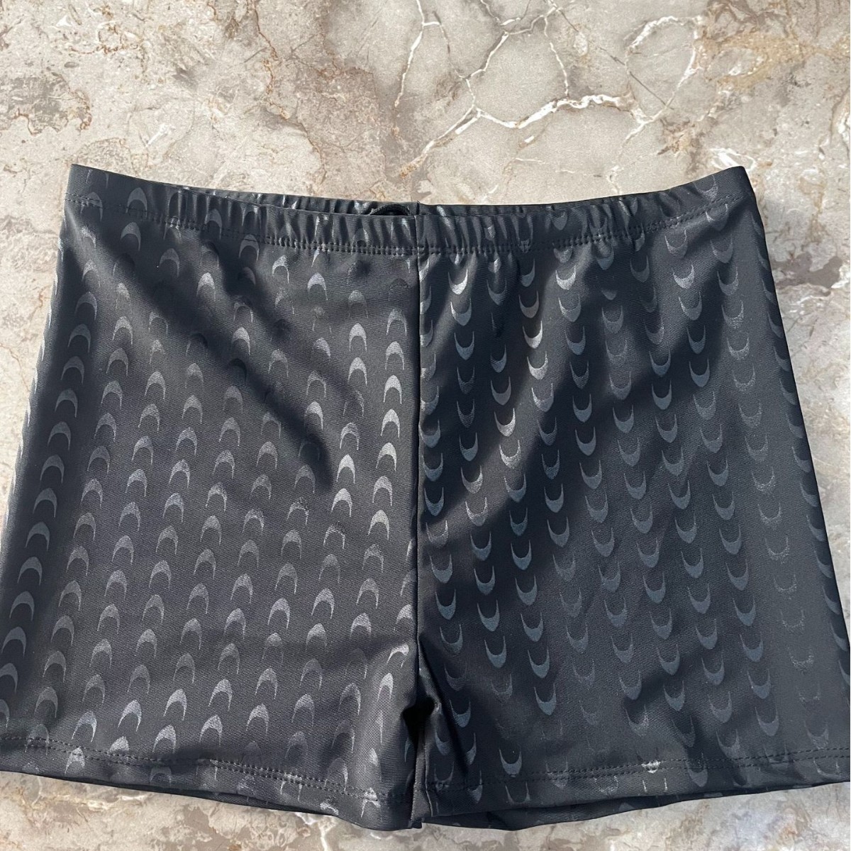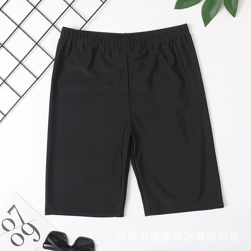 新品五分純黒浄版メンズ水泳パンツポリエステル生地平角通気速乾ビーチ温泉水泳パンツ