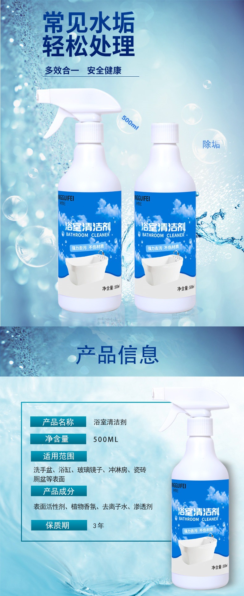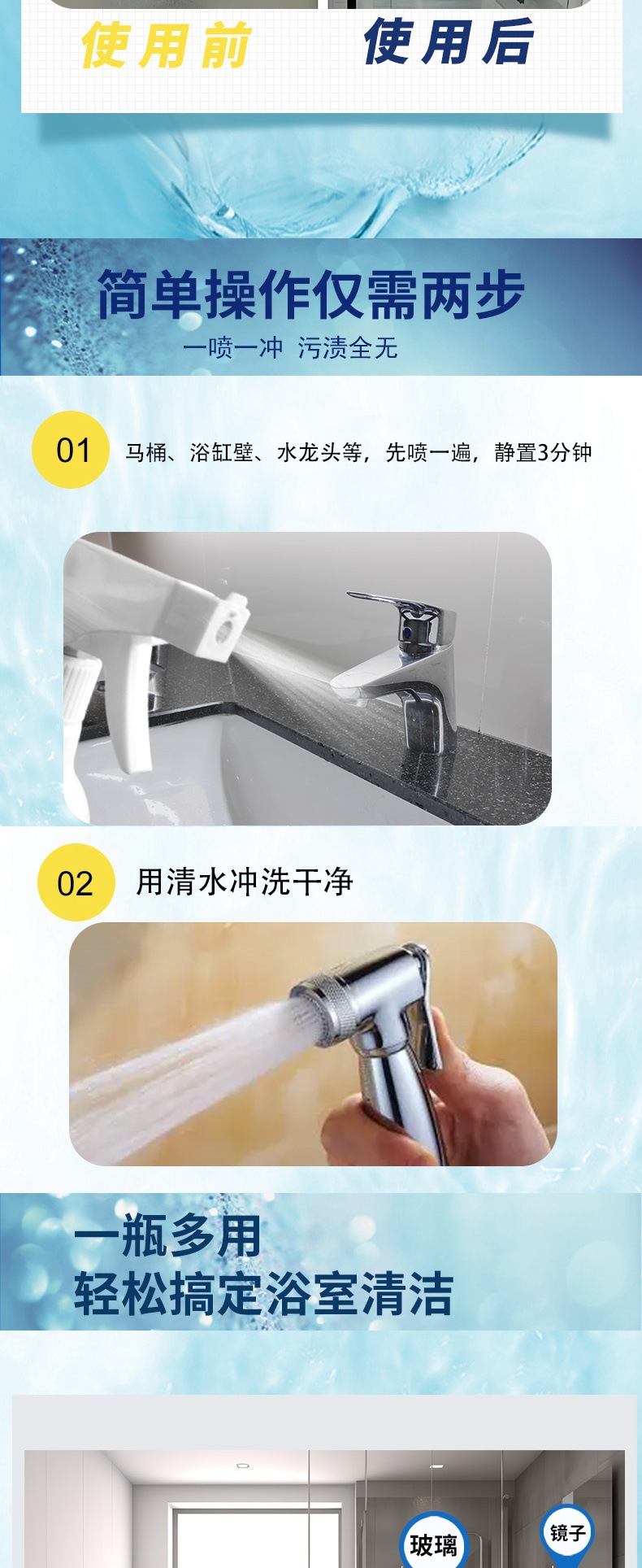 効能 浴室の床、壁の水垢、ガラス、蛇口の水垢などを掃除します。
