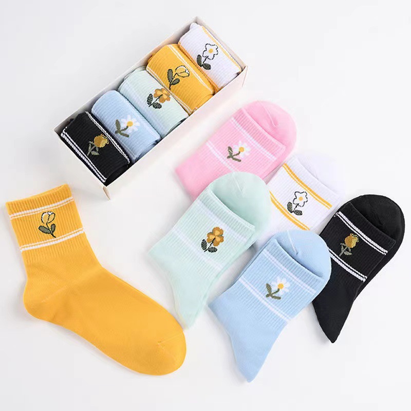 卸売りの小さい菊の花の女性の中の筒の靴下の春の夏は純色の甘くてかわいい潮運を合わせて秋の新型のスポーツの靴下に入ります。