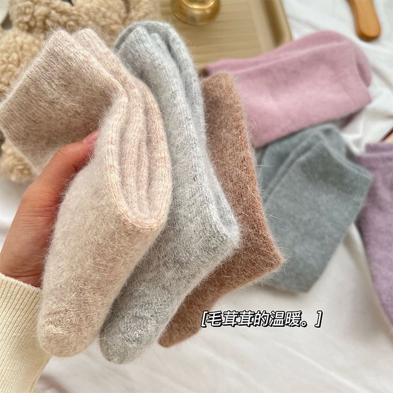 ウールソックスの女性は秋冬にベルベットをつけて中筒靴下の三棒を厚くした日系保温タオルソックスの保温ストッキングの女性