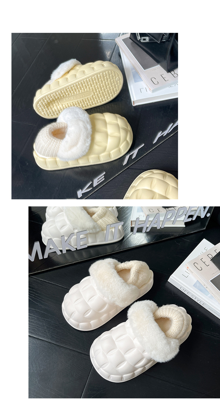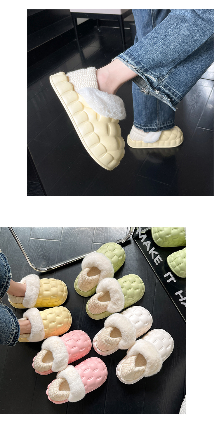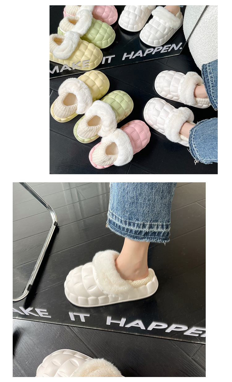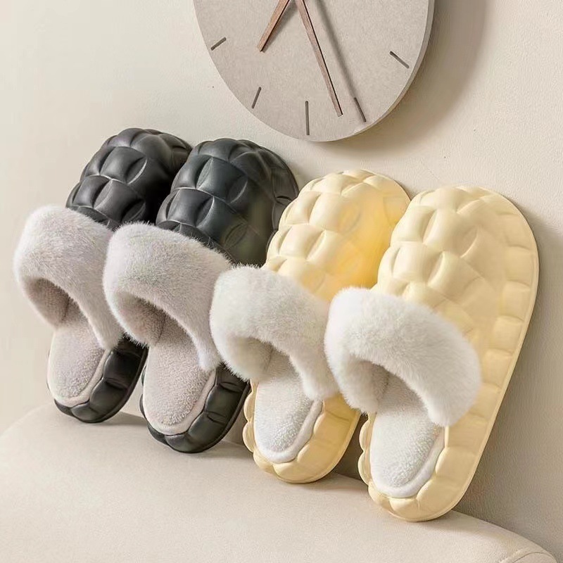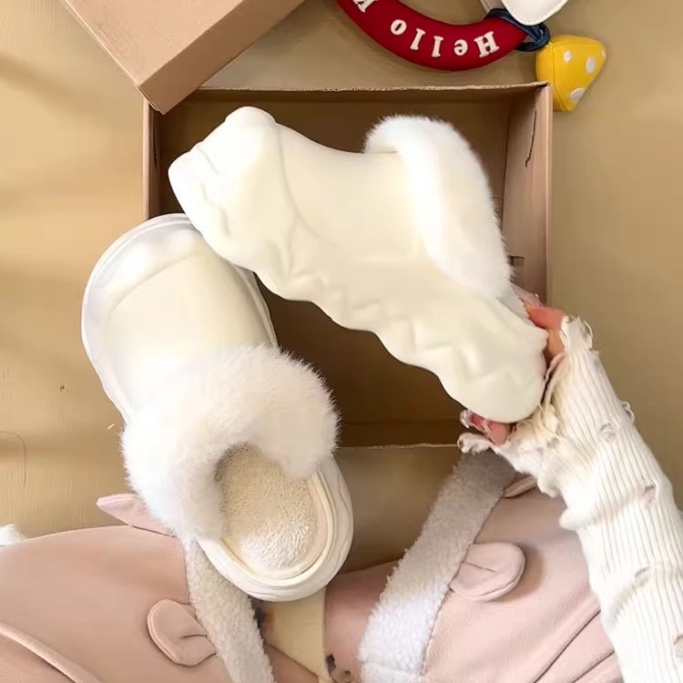 2024年秋冬新作 厚底漫画風ファーサンダル レディース 室内/室外兼用 静音・滑り止め付き コットンサンダル 快適