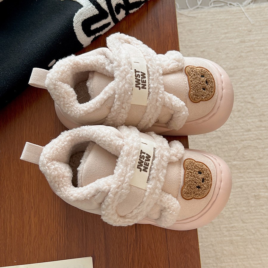 女子学生向けの冬のカジュアルな防寒綿スリッパ、ベルベットEVA滑り止め屋内厚底暖かいアウターウェア包頭綿靴
