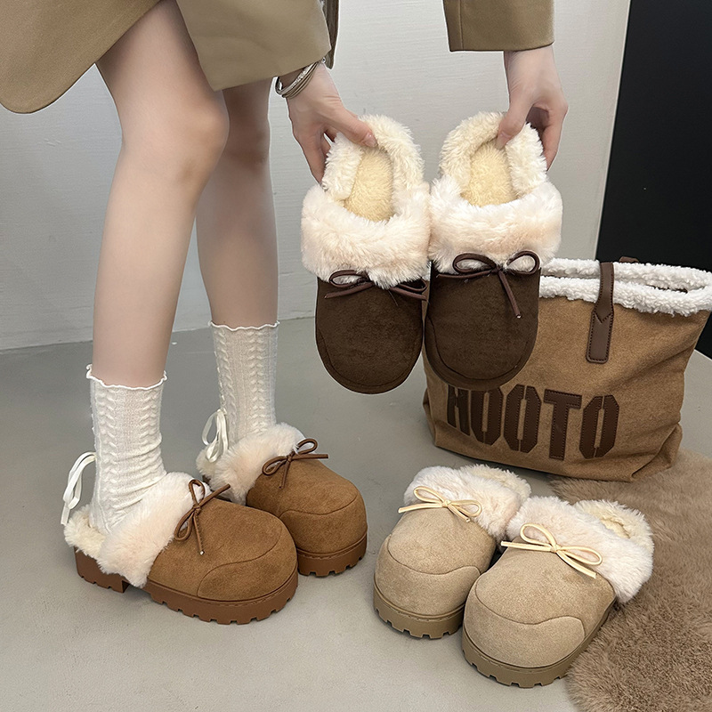 ミルクは綿の靴の女性のタイプの冬の新型の2024の外でベルベットの保温のかわいい毛の靴の厚い底の雪の靴の潮を着ます